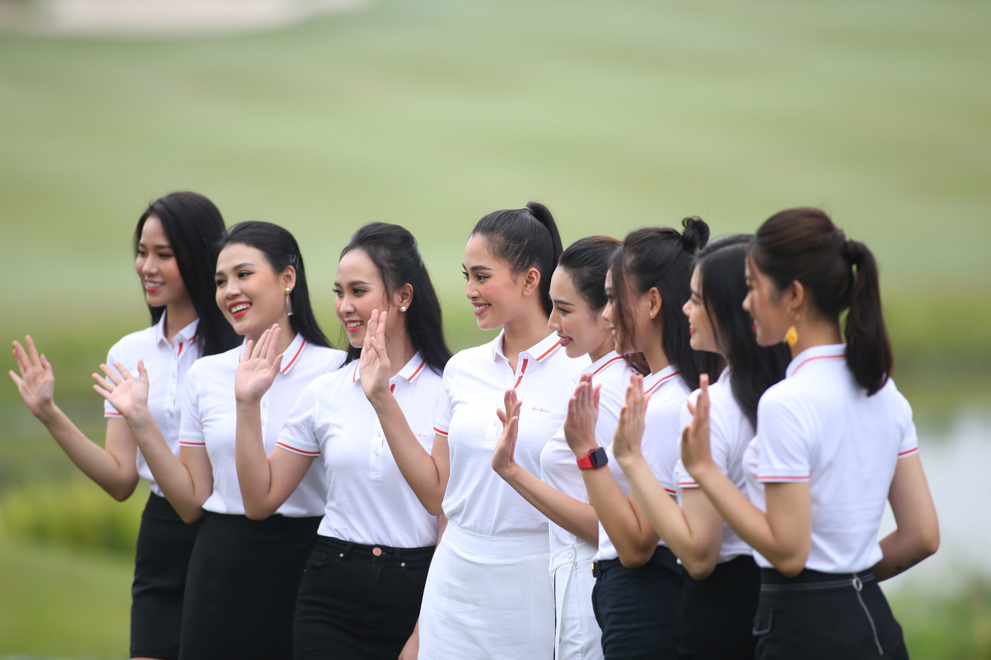 Dàn người đẹp hào hứng tham gia giải Tiền Phong Golf Championship: Người đẹp Biển Nguyễn Hoàng Bảo Châu, Diệu Ngân, Thu Thảo, Minh Trang, Vân Anh và Ngọc Bích.