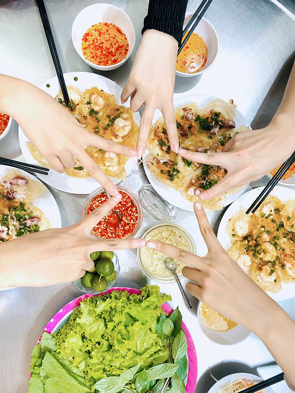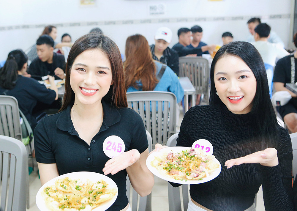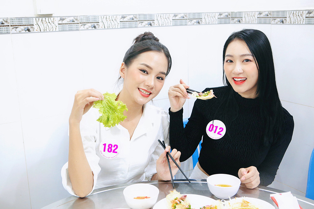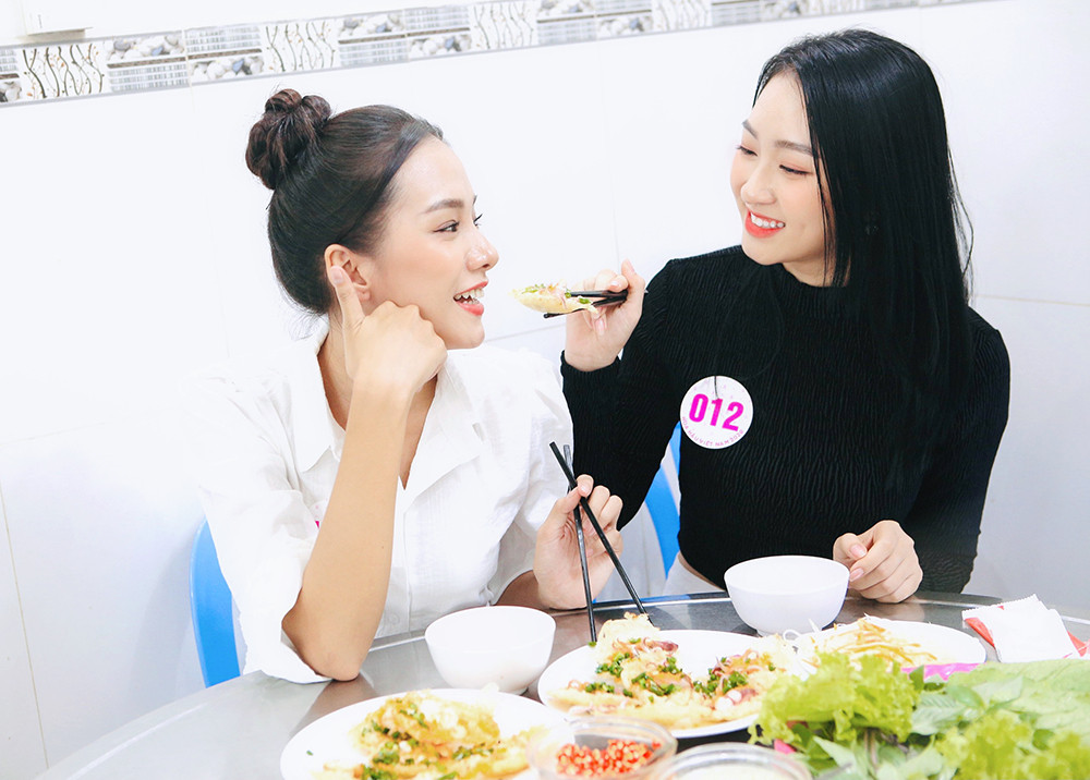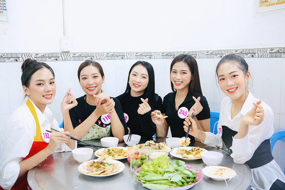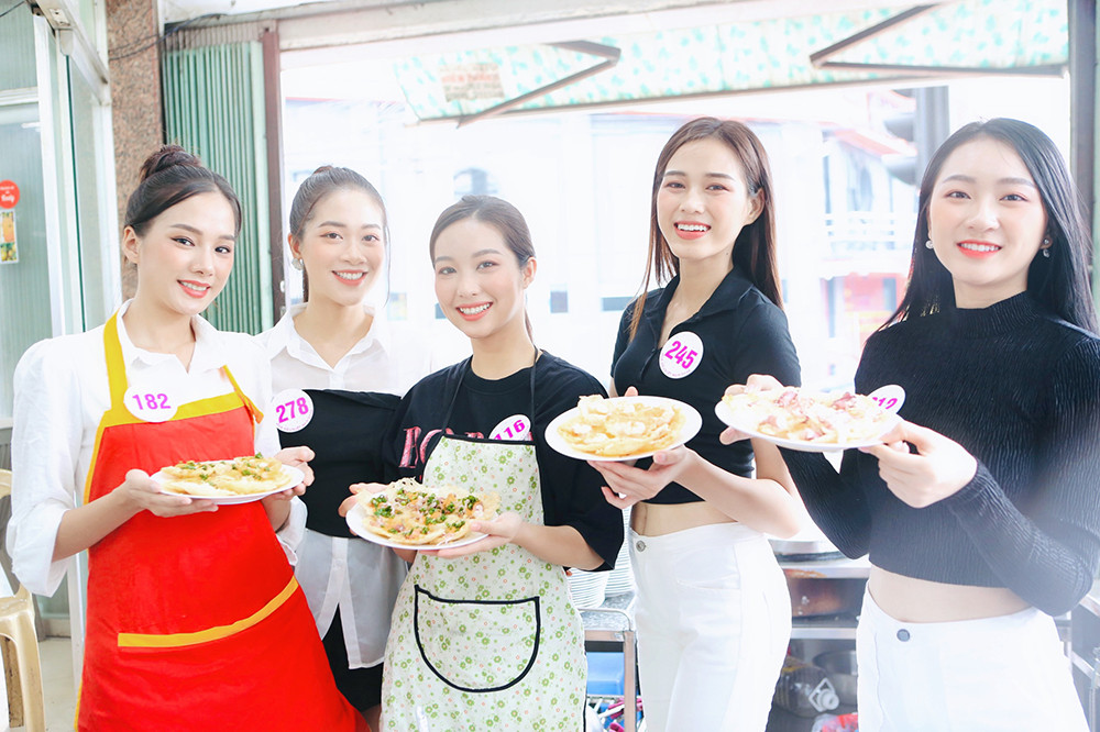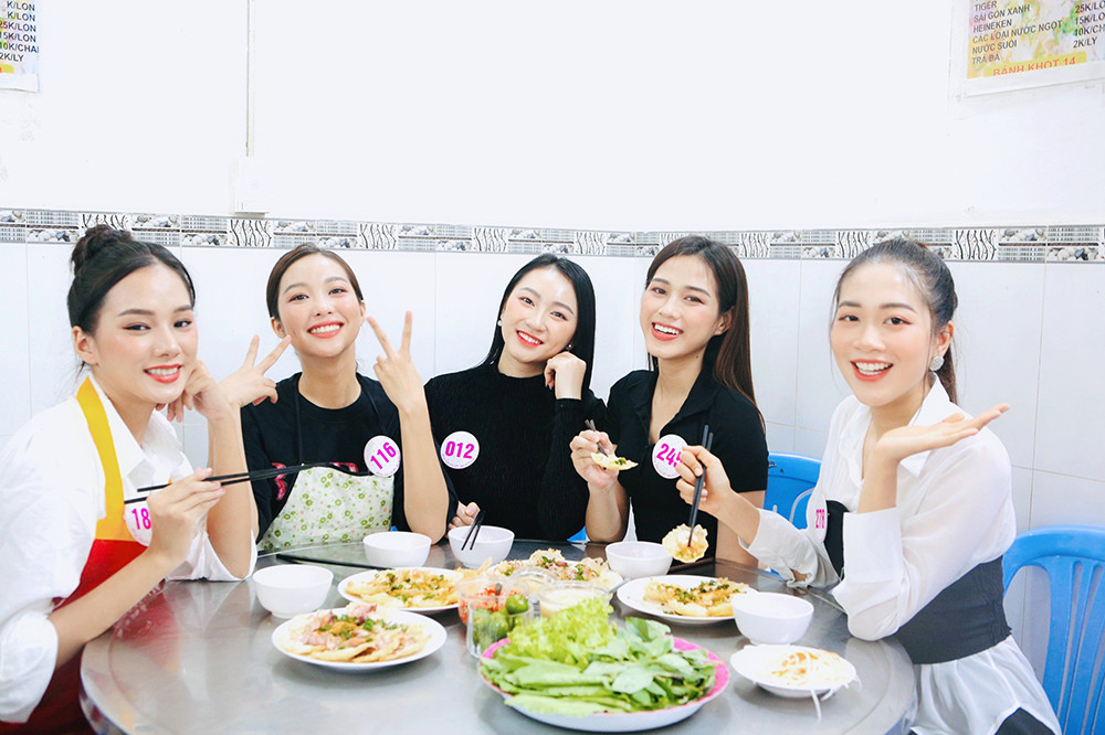 Dàn thí sinh hào hứng khi được trải nghiệm và khám phá món bánh khọt của Vũng Tàu.