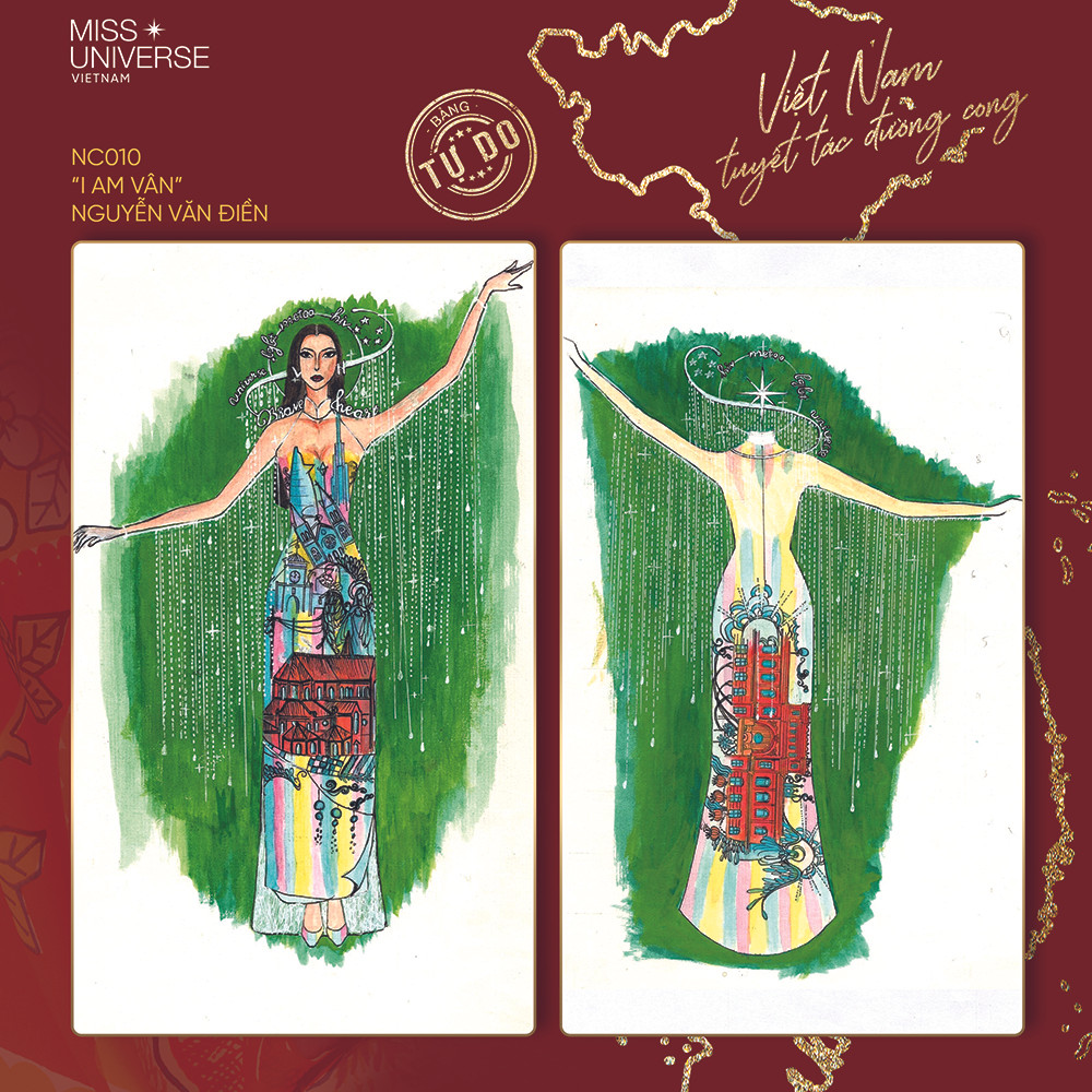 “I Am Vân” của Nguyễn Văn Điền lấy ý tưởng từ những bức tranh vẽ về Sài Gòn nhằm giới thiệu về một thành phố năng động, hiếu khách và đó cũng là quê hương của Hoa hậu Khánh Vân. Đăng quang Hoa hậu Hoàn vũ Việt Nam đồng nghĩa với việc gánh vác trọng trách của một Hoa hậu và sức nặng của chiếc vương miện “Brave Heart” trên vai. Gắn với sứ mệnh cao cả của một Hoa hậu – Khánh Vân sẽ luôn mong muốn giúp đỡ những hoàn cảnh khó khăn trong cuộc sống như cộng đồng LGBT hay những người nhiễm HIV… Với chiếc mấn được lấy ý tưởng từ biểu tượng của Miss Universe cùng sự lấp lánh của những viên pha lê, với ngôi sao mong muốn Khánh Vân sẽ thực hiện trọn vẹn hành trình chinh phục vương miện của mình bằng một trái tim thật dũng cảm.