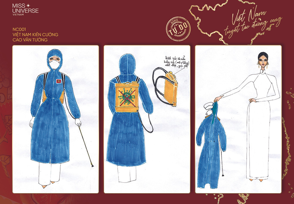 Sau hơn một tháng khởi động, cuộc thi “Tuyển chọn thiết kế trang phục dân tộc cho đại diện Việt Nam tại Miss Universe 2020” đã thu hút đông đảo thí sinh tham gia. Lấy ý tưởng từ đại dịch toàn cầu Covid-19, bài thi “Việt Nam kiên cường” của Cao Văn Tường hướng đến tính trình diễn, nêu rõ vấn đề thế giới đang quan tâm hiện nay và bày tỏ lòng biết ơn với các bác sĩ trên toàn thế giới. Trang phục gồm lớp khoác bên ngoài là bộ đồ bảo vệ bên trong là tà áo dài trắng, khi đến giữa sân khấu mở cúc áo bảo hộ, xoay một vòng lộ ra chiếc áo dài trắng tinh khôi như nói lên sự dịu dàng cũng như sự mạnh mẽ không chỉ riêng phụ nữ mà cả dân tộc Việt Nam đang kiên cường chống lại mọi khó khăn của dịch bệnh. Áo bảo hộ bên ngoài thiết kế để dễ tháo ra khi trình diễn. Sau lưng là chiếc bình xịt sát khuẩn, gắn trên lưng như một chiếc ba lô, dính liền với áo bảo hộ (bình sát khuẩn chủ yếu là từ chất liệu nhẹ, không nặng nề, như một chiếc ba lô).