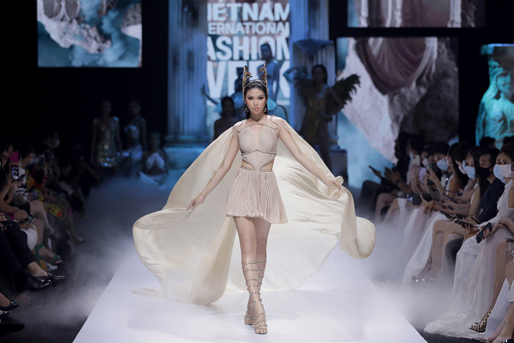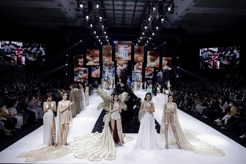 Sự xuất hiện của top 3 Hoa hậu Việt Nam 2020 trên sàn diễn thời trang nhận được sự cổ vũ nồng nhiệt của khán giả.