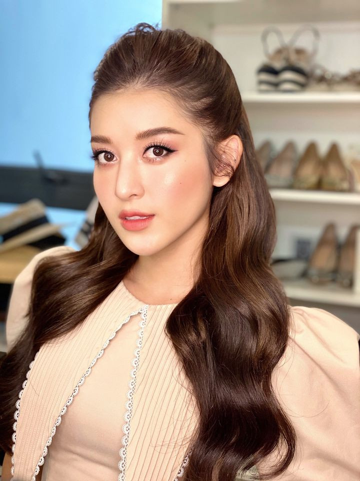 Á hậu Huyền My kiêu kỳ với phong cách trang điểm nhẹ nhàng và kiểu tóc buộc đuôi ngựa.