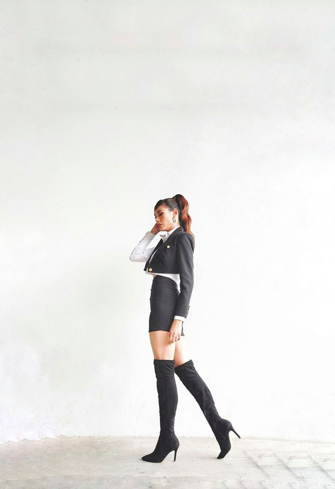 'Chị đại' của làng mẫu Võ Hoàng Yến tạo dáng cực 'ngầu' với set đồ tông màu đen-trắng.