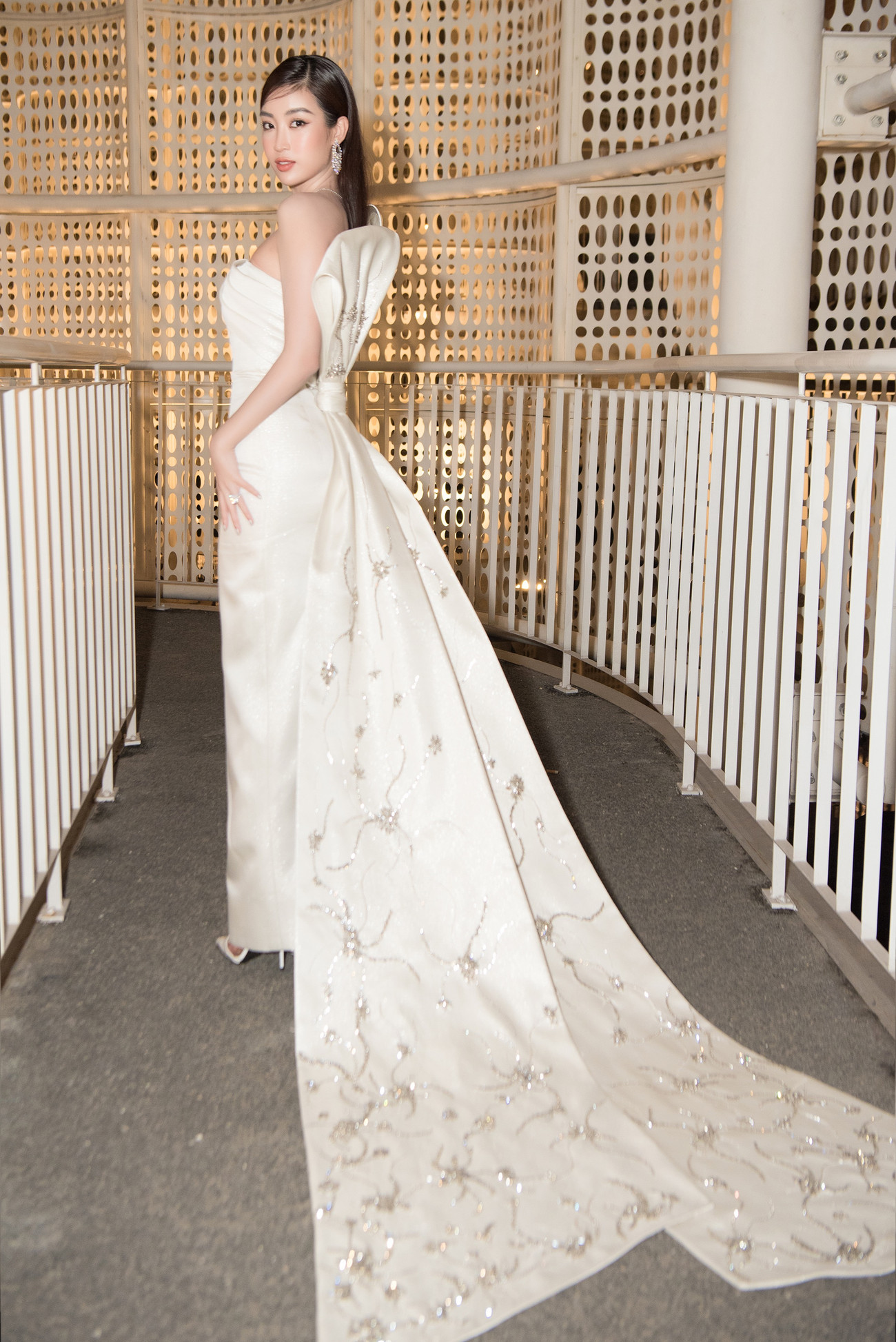 Kết thúc nhiệm kỳ hơn 2 năm nhưng Đỗ Mỹ Linh vẫn là nàng hậu được đông đảo khán giả yêu mến. Với thiết kế cúp ngực, người đẹp tự tin khoe vai trần gợi cảm.