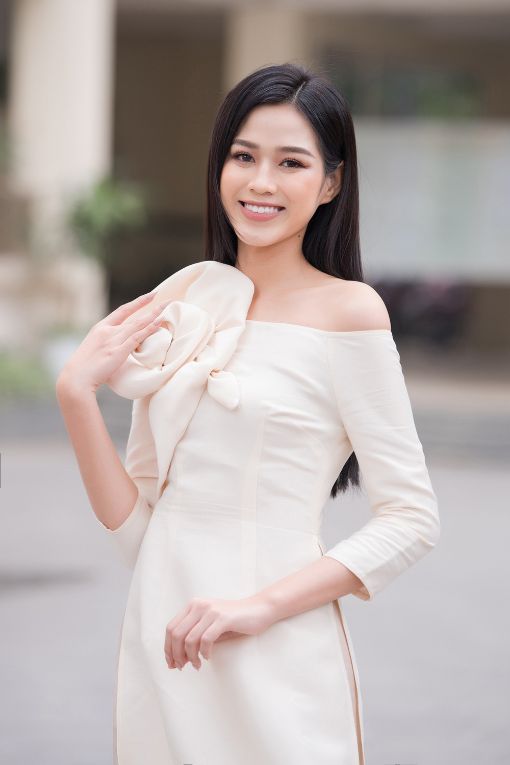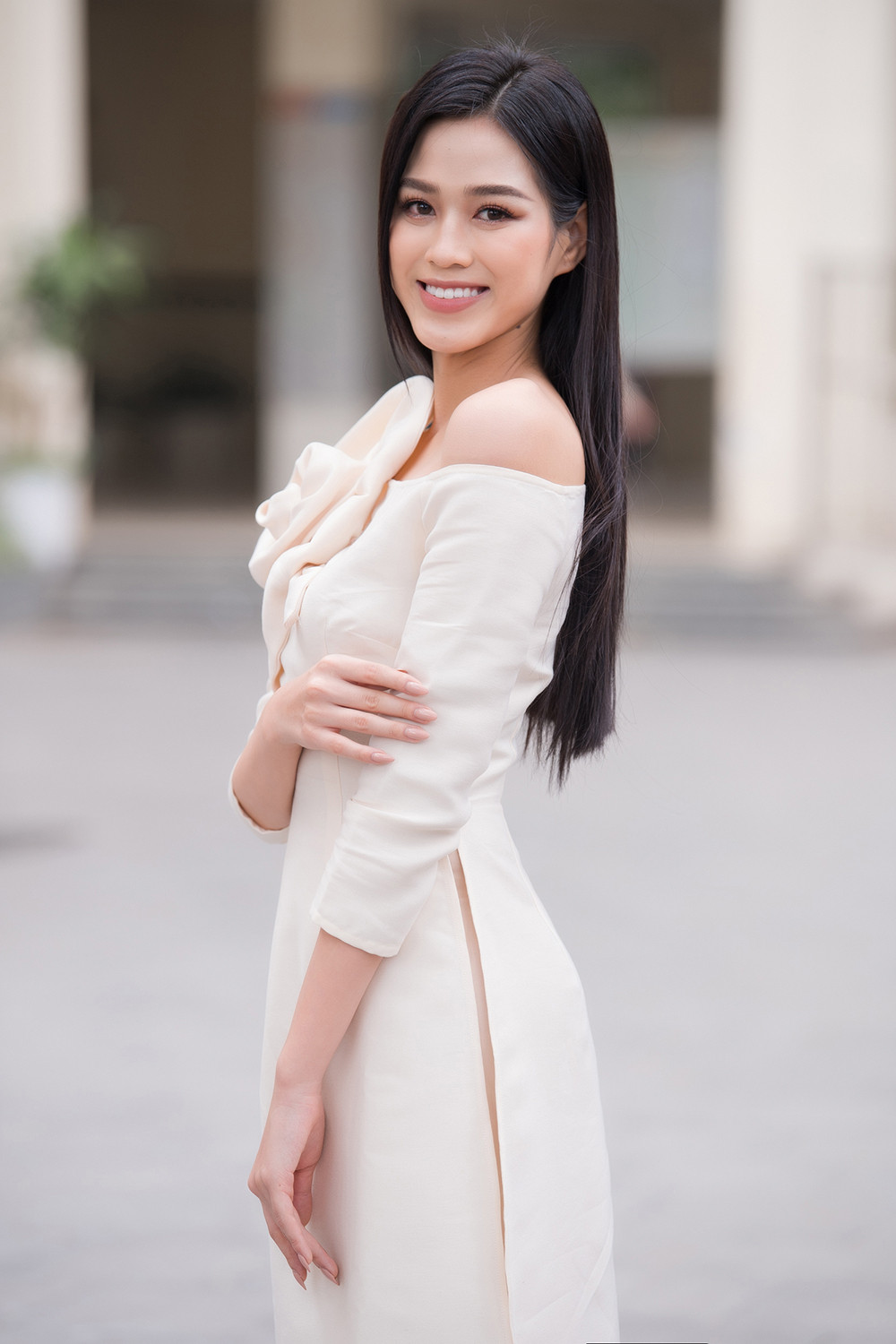 Cô cũng chọn phong cách trang điểm nhẹ nhàng, duyên dáng khi mặc áo dài.