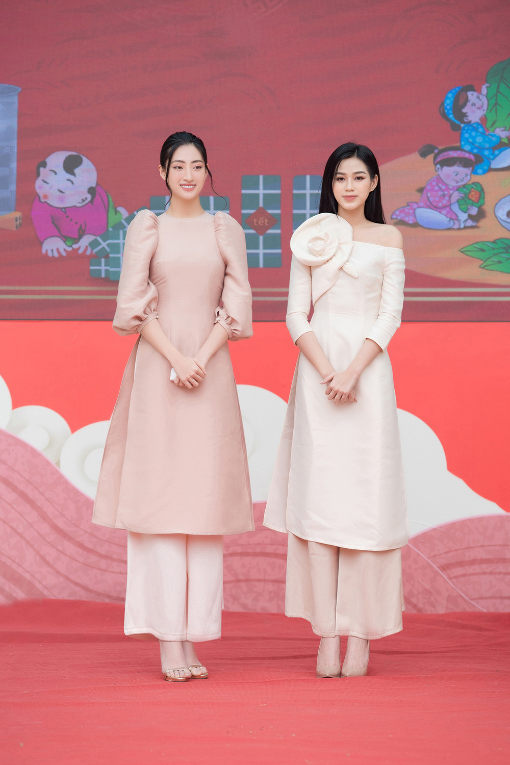 Cùng diện áo dài Tết duyên dáng, nền nã, có thể nói nhan sắc của hai nàng hậu xinh đẹp 'một chín một mười' khiến các fans xao xuyến.