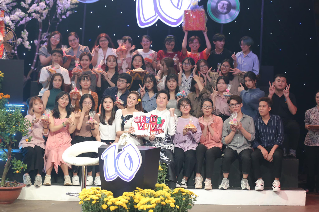 Người đẹp cùng các khách mời mặc áo dài, mang không khí Tết tới trường quay.