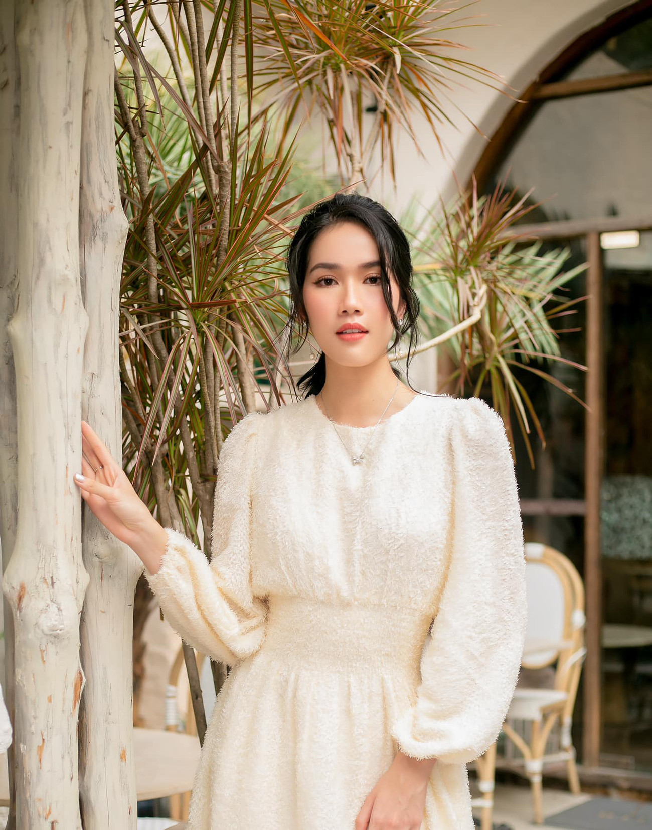 Á hậu Phương Anh đẹp tinh khôi tựa 'nàng thơ' với gam màu trắng thanh lịch.