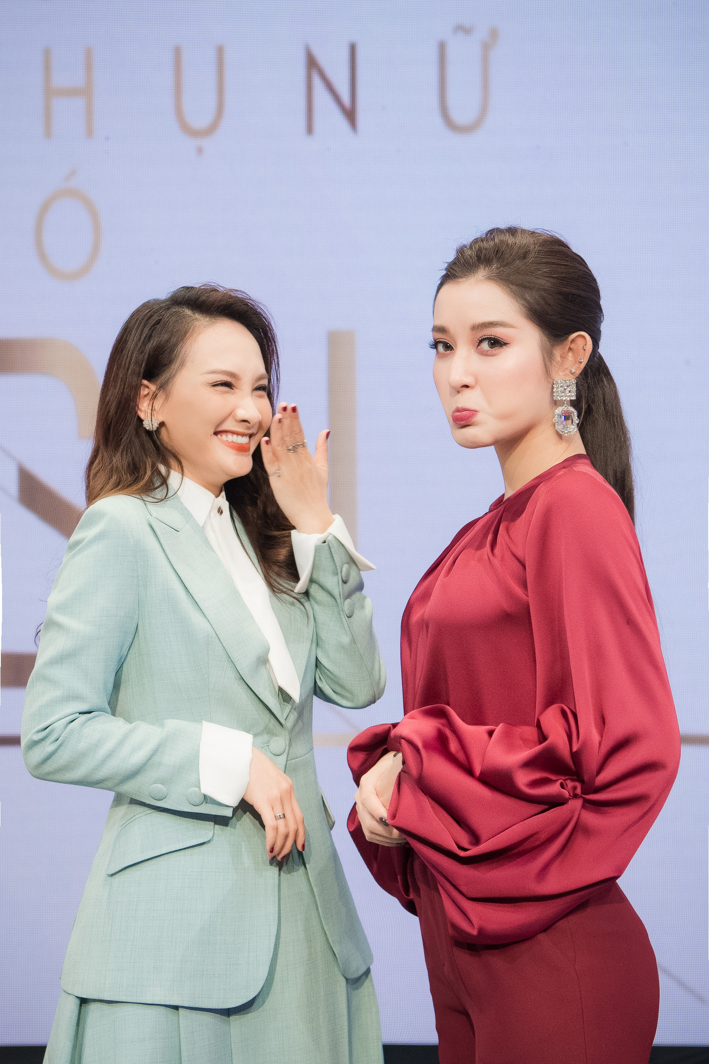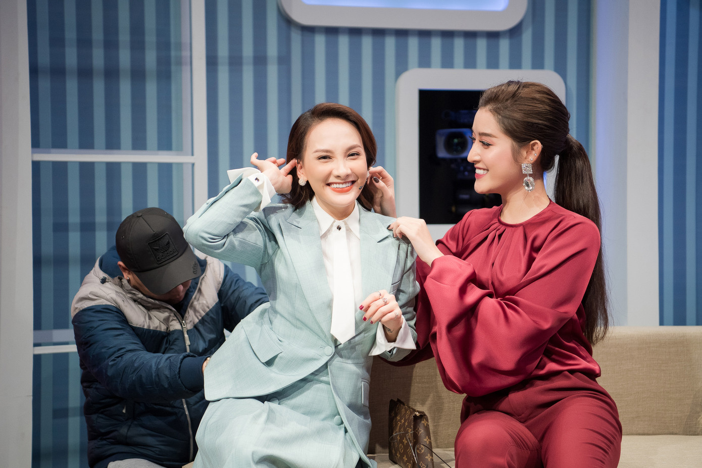 Mặc dù vậy, với tính cách nhí nhảnh và hồn nhiên thường thấy của mình, Bảo Thanh và Huyền My đã nhanh chóng biến những khoảnh khắc đọ dáng bên nhau thành những bức hình vô cùng nhí nhố, làm khuấy động không khí của trường quay.
