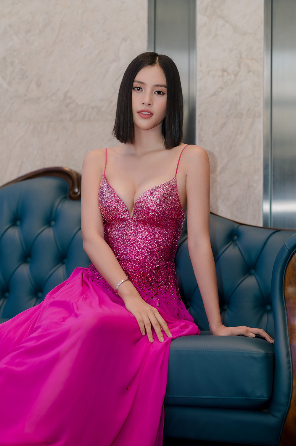 Với mái tóc ngắn cá tính, khuôn mặt rạng rỡ và thân hình gợi cảm, Hoa hậu Trần Tiểu Vy trở thành tâm điểm trong buổi gặp gỡ.