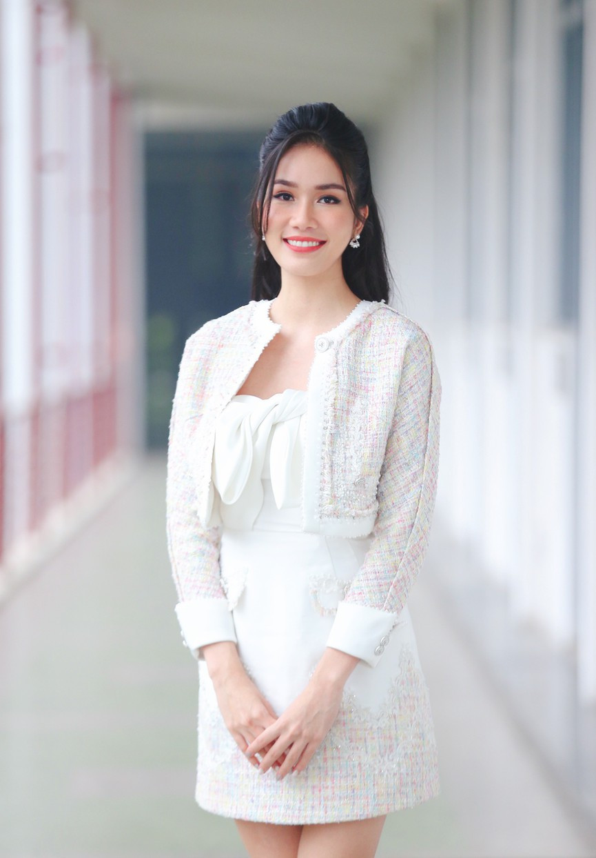 Sở hữu vẻ đẹp duyên dáng và thanh lịch, Á hậu Phương Anh rất phù hợp với gam màu trắng nền nã.