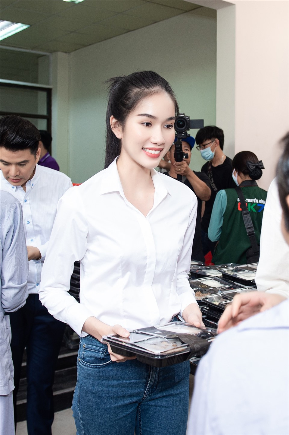 Trong các hoạt động từ thiện, xã hội Á hậu Phương Anh cũng rất nổi bật dù chỉ mặc áo sơ-mi trắng giản dị.