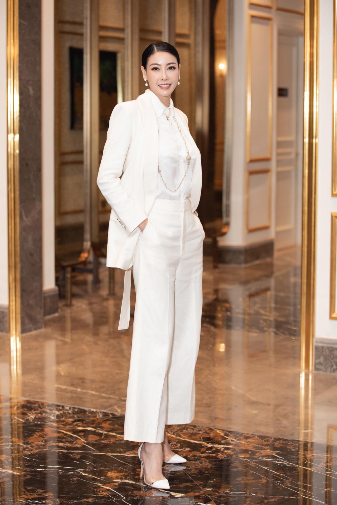 Người đẹp hướng tới những trang phục cá tính với chi tiết độn vai ấn tượng để thể hiện sự sang trọng, quyền lực khi ngồi ở vị trí 'cầm cân nảy mực'.