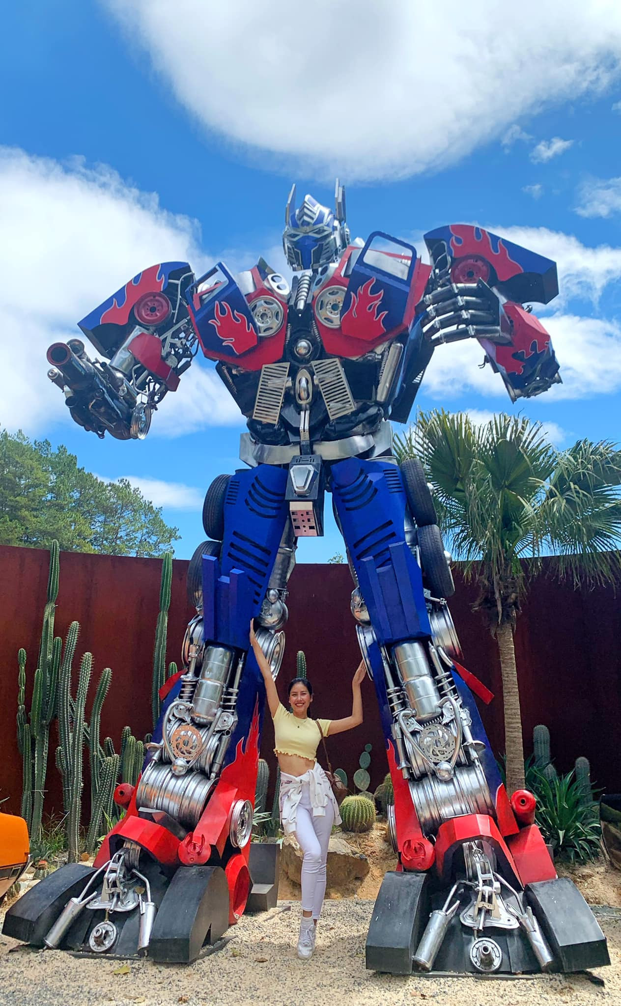 Người đẹp hào hứng chụp ảnh với mô hình người máy khổng lồ tại đây.