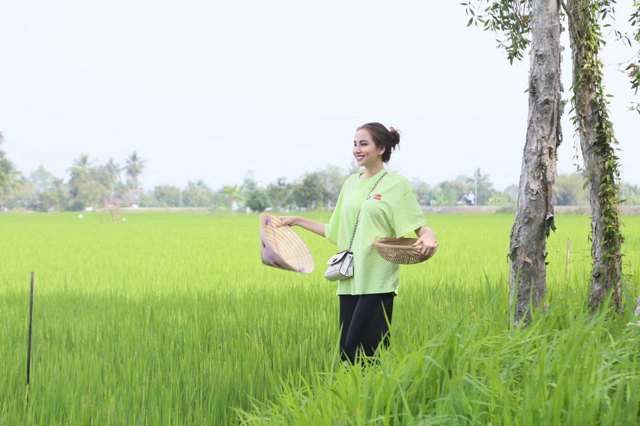 Hoa hậu Diễm Hương hóa thôn nữ dịu dàng trên ruộng lúa.