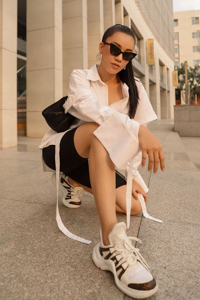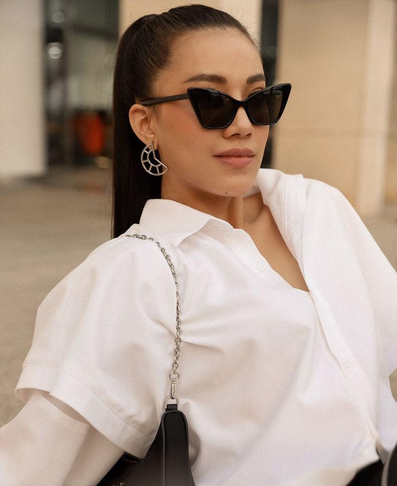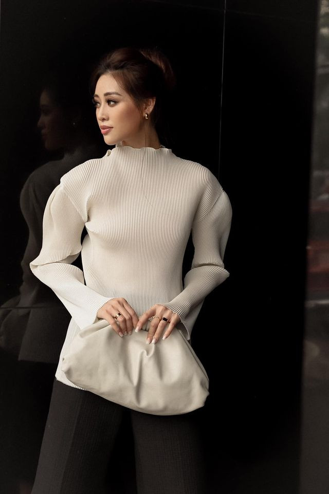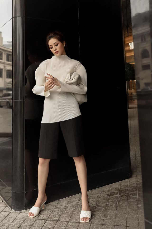 Không hẹn mà gặp, Á hậu Kim Duyên cũng diện set đồ cá tính tông màu đen-trắng xuống phố.