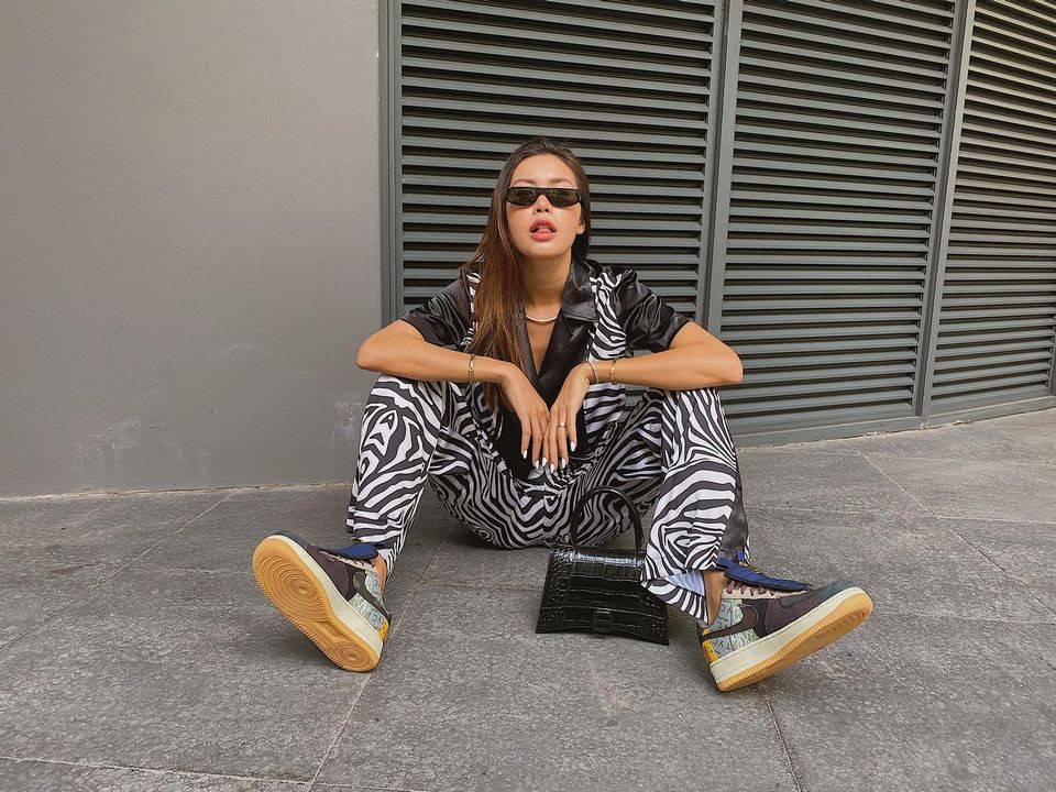 Siêu mẫu Minh Tú diện set đồ hoạ tiết ngựa vằn cực 'chất' xuống phố.