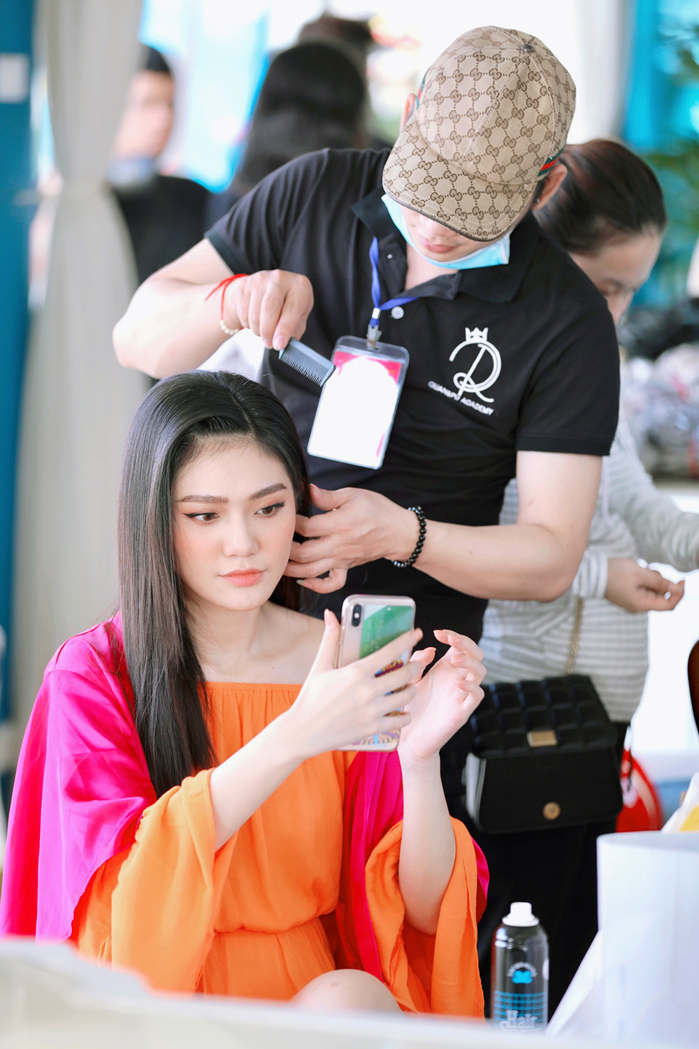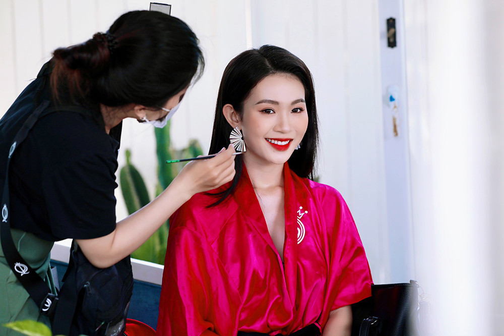Các thí sinh được đội ngũ chuyên gia make-up chăm sóc kỹ càng trước buổi chụp hình.
