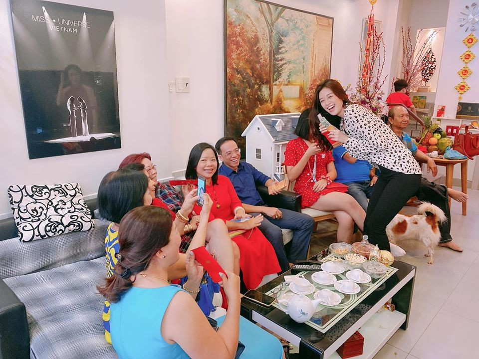 Trong một bức ảnh được Khánh Vân chia sẻ, những người thân trong gia đình, họ hàng nhà cô xếp hàng để chờ được Hoa hậu Khánh Vân lì xì vì quá đông. Hình ảnh này khiến cư dân mạng thích thú.
