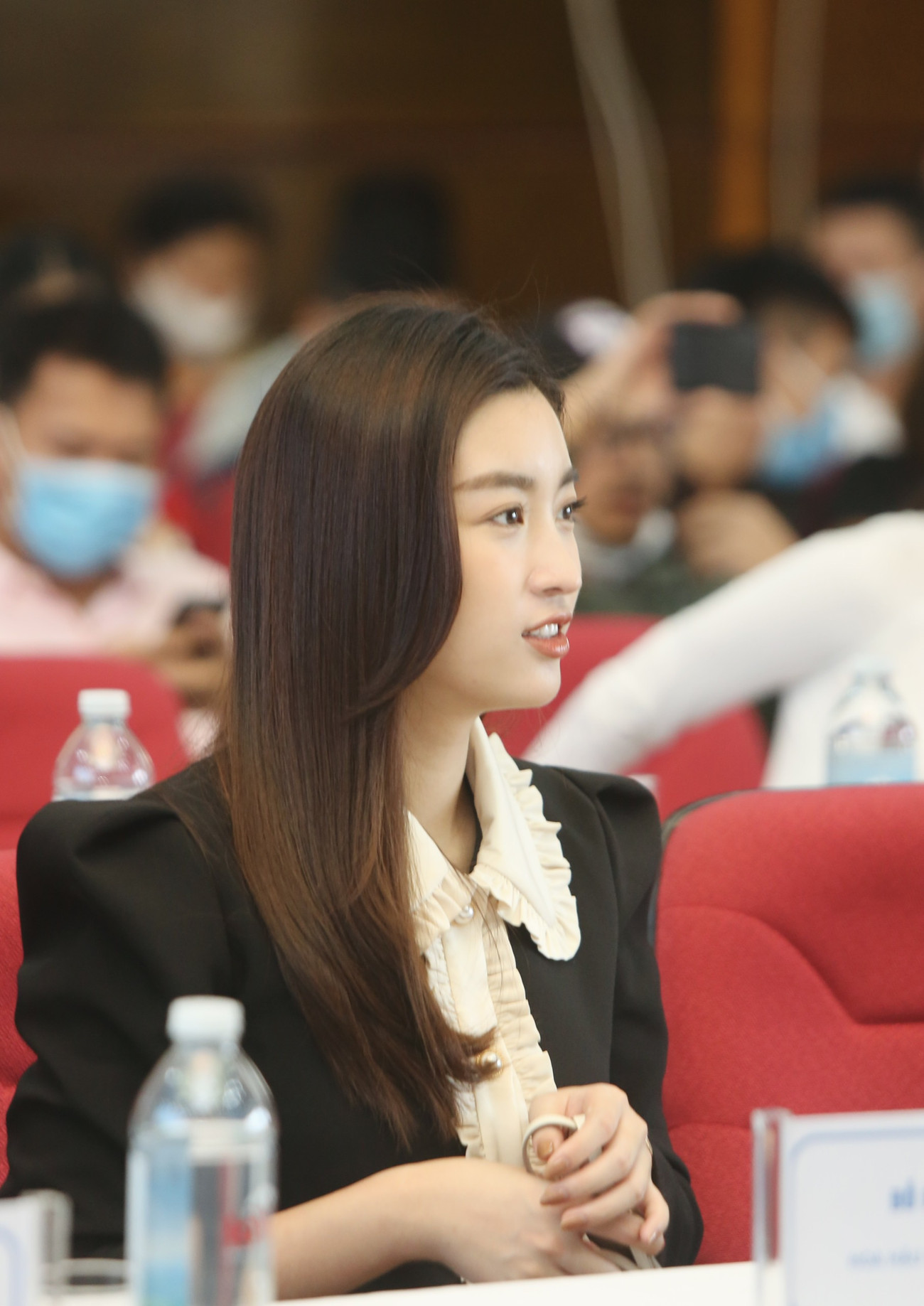 Xuất hiện tại họp báo, Hoa hậu Đỗ Mỹ Linh diện bộ váy đen thanh lịch và kín đáo. Người đẹp bật mí, dù bận rộn với công việc kinh doanh nhưng cô cố gắng sắp xếp để tham dự sự kiện này.