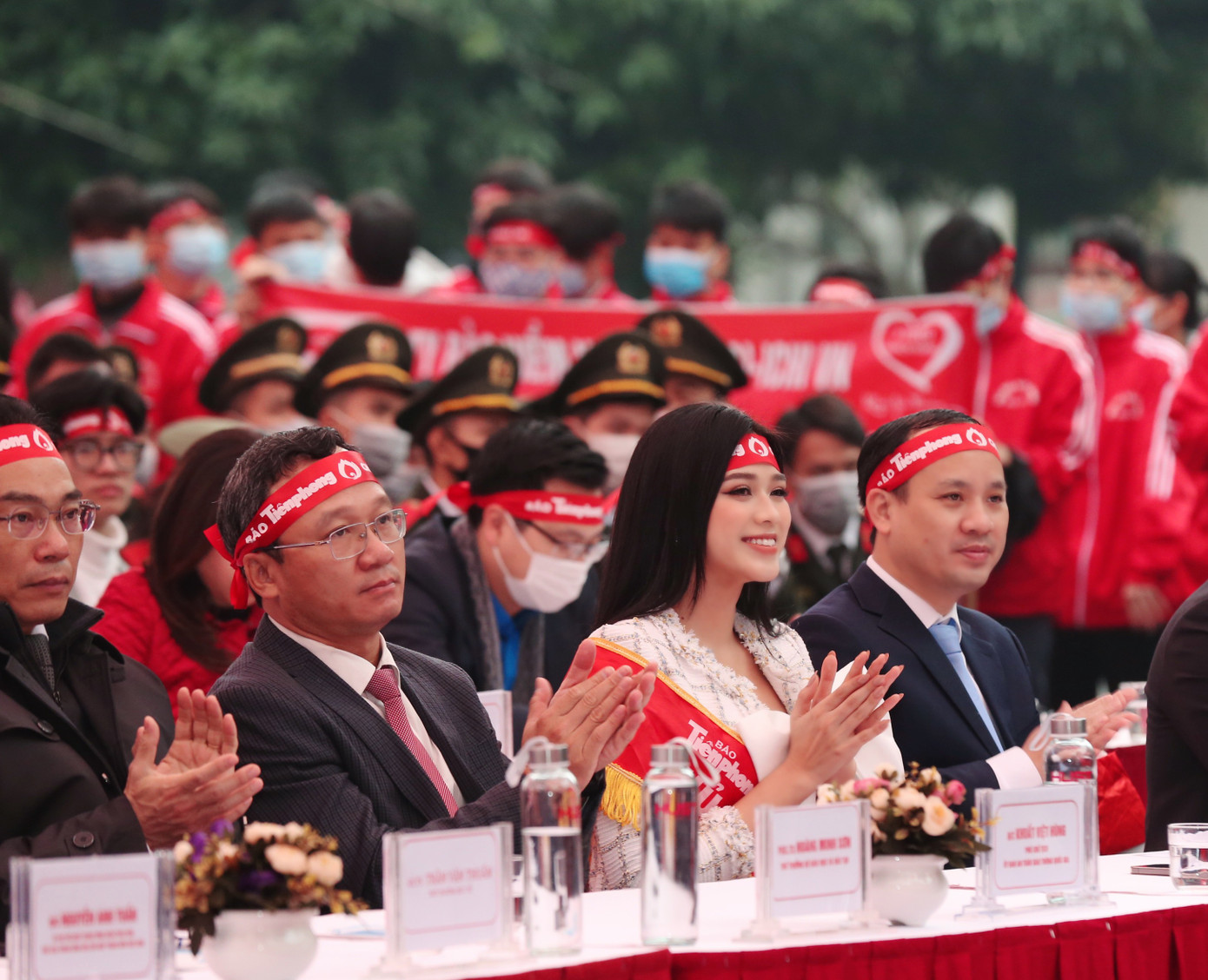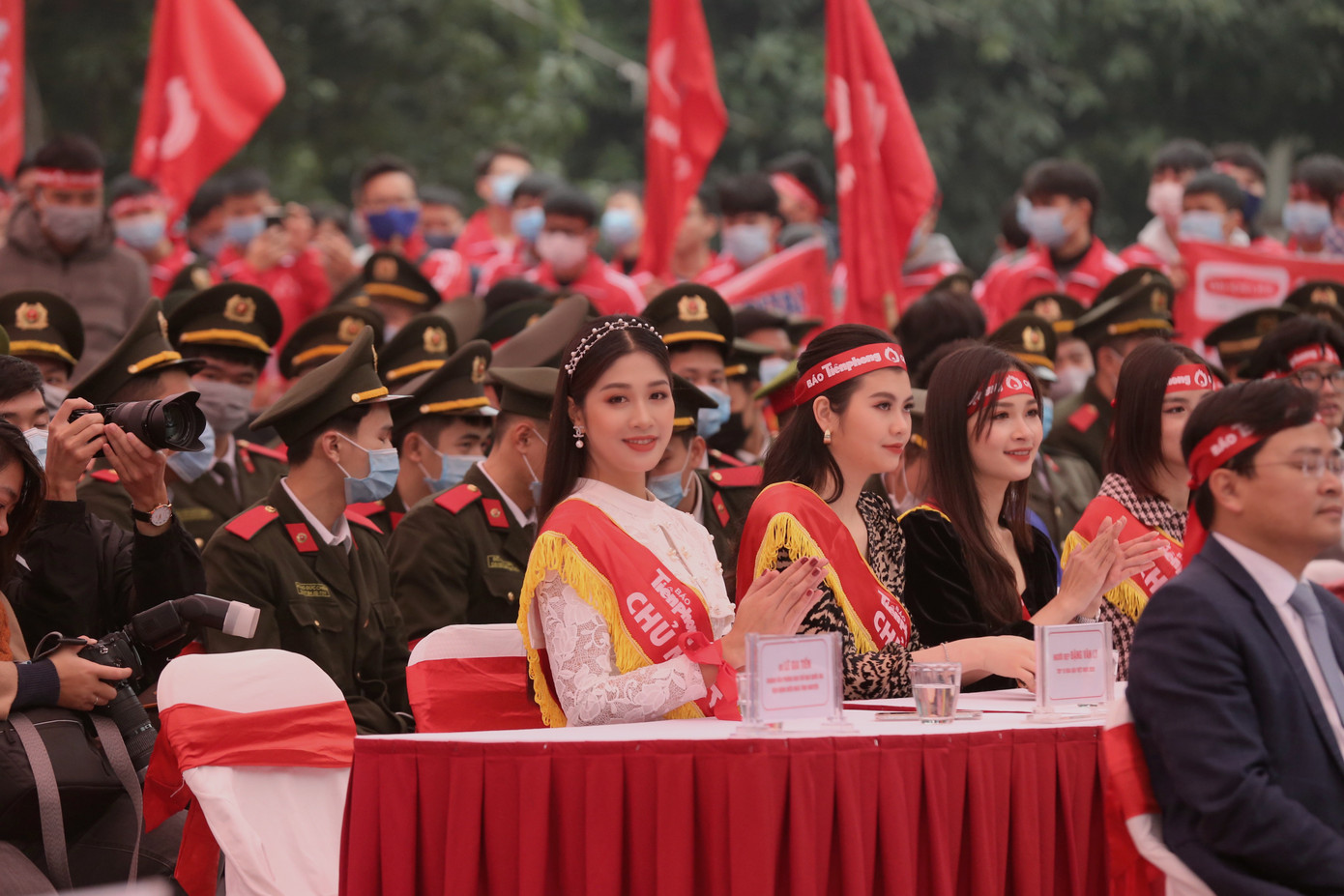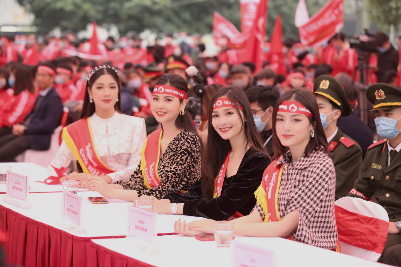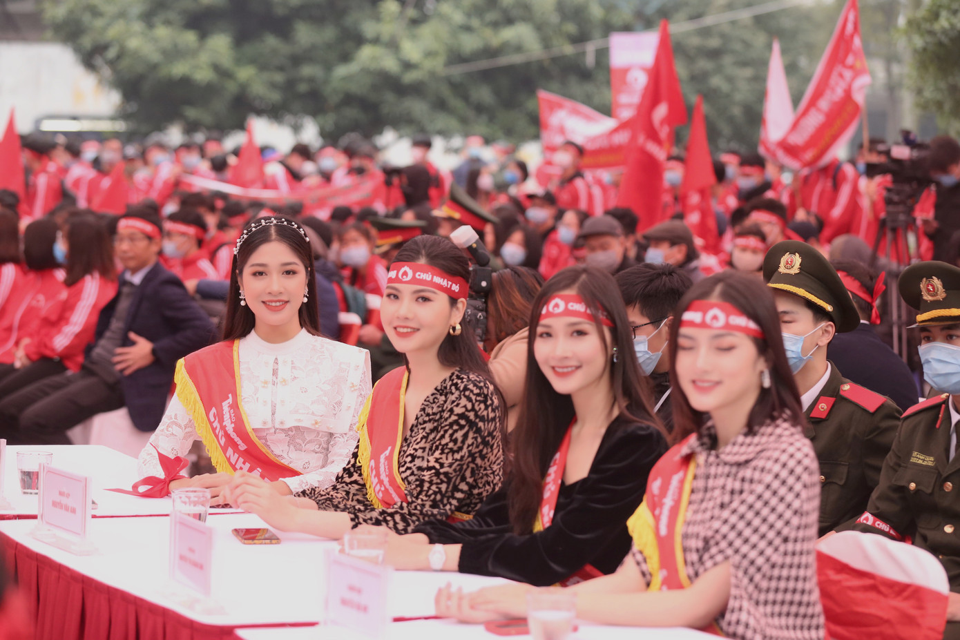 Bên cạnh top 3 Hoa hậu Việt Nam 2020 là dàn người đẹp gồm: Đặng Vân Ly, Nguyễn Thị Khánh Linh, Nguyễn Hà My và Nguyễn Thị Vân Anh. “Linh rất vinh dự khi được có mặt tại ngày hội chính của Chủ nhật Đỏ tại trường ĐH Bách Khoa ngày hôm nay. Nhìn thấy hình ảnh các bạn sinh viên hào hứng và nhiệt tình tham gia hiến máu, Linh lại nhớ hồi Đại học cũng sang Trường Đại học Bách khoa tham gia Chủ nhật Đỏ và mang về được chú gấu rất to! Đây thực sự là một sự kiện vô cùng ý nghĩa và có sức lan toả mạnh mẽ, góp phần củng cố lượng máu dự trữ để đáp ứng yêu cầu cấp cứu, điều trị và bảo vệ sức khoẻ cho mọi người”- người đẹp Nguyễn Thị Khánh Linh nói.