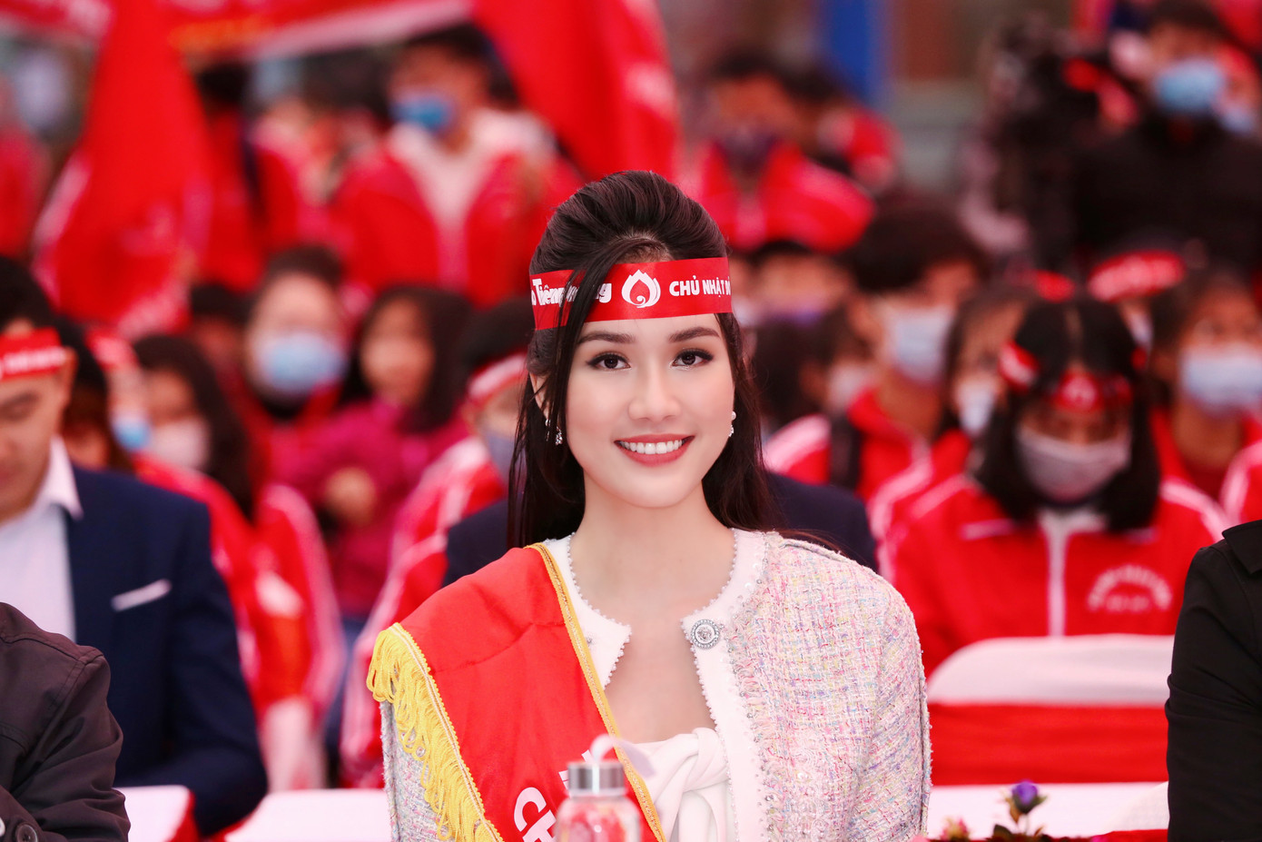 Hoa hậu Đỗ Thị Hà rạng rỡ trong sự kiện Chủ nhật Đỏ.