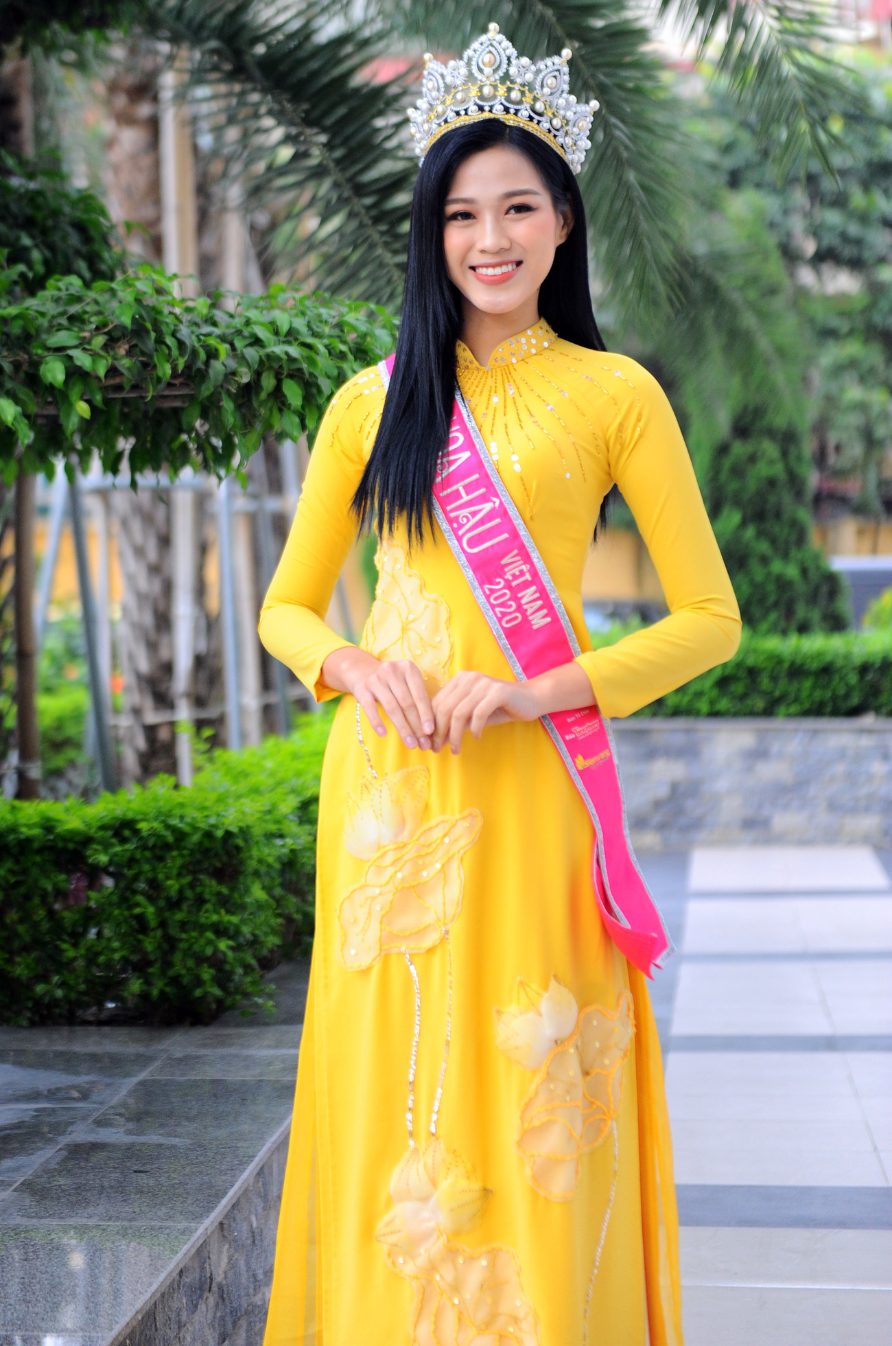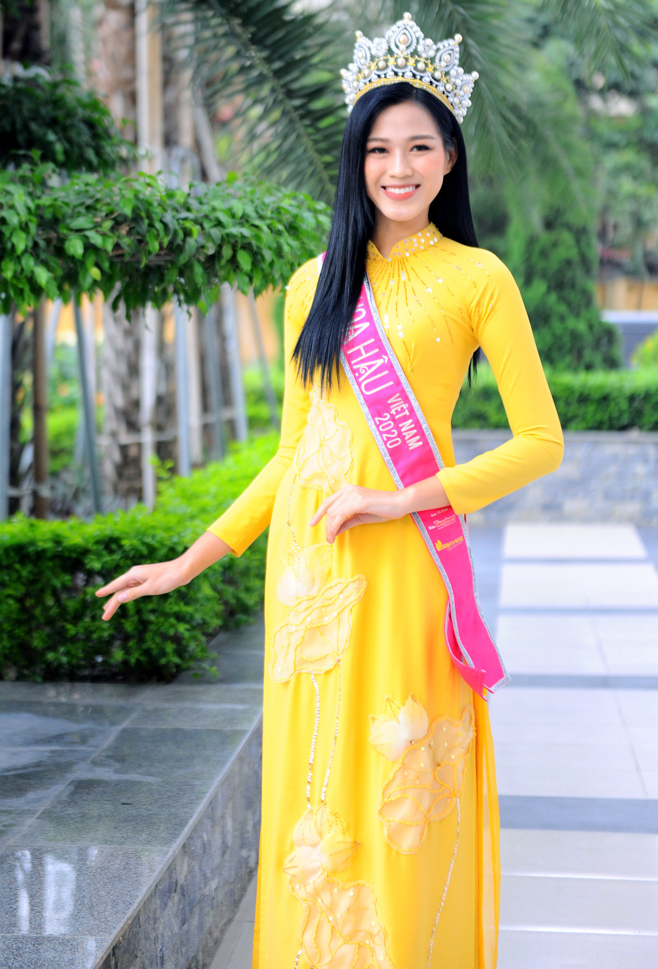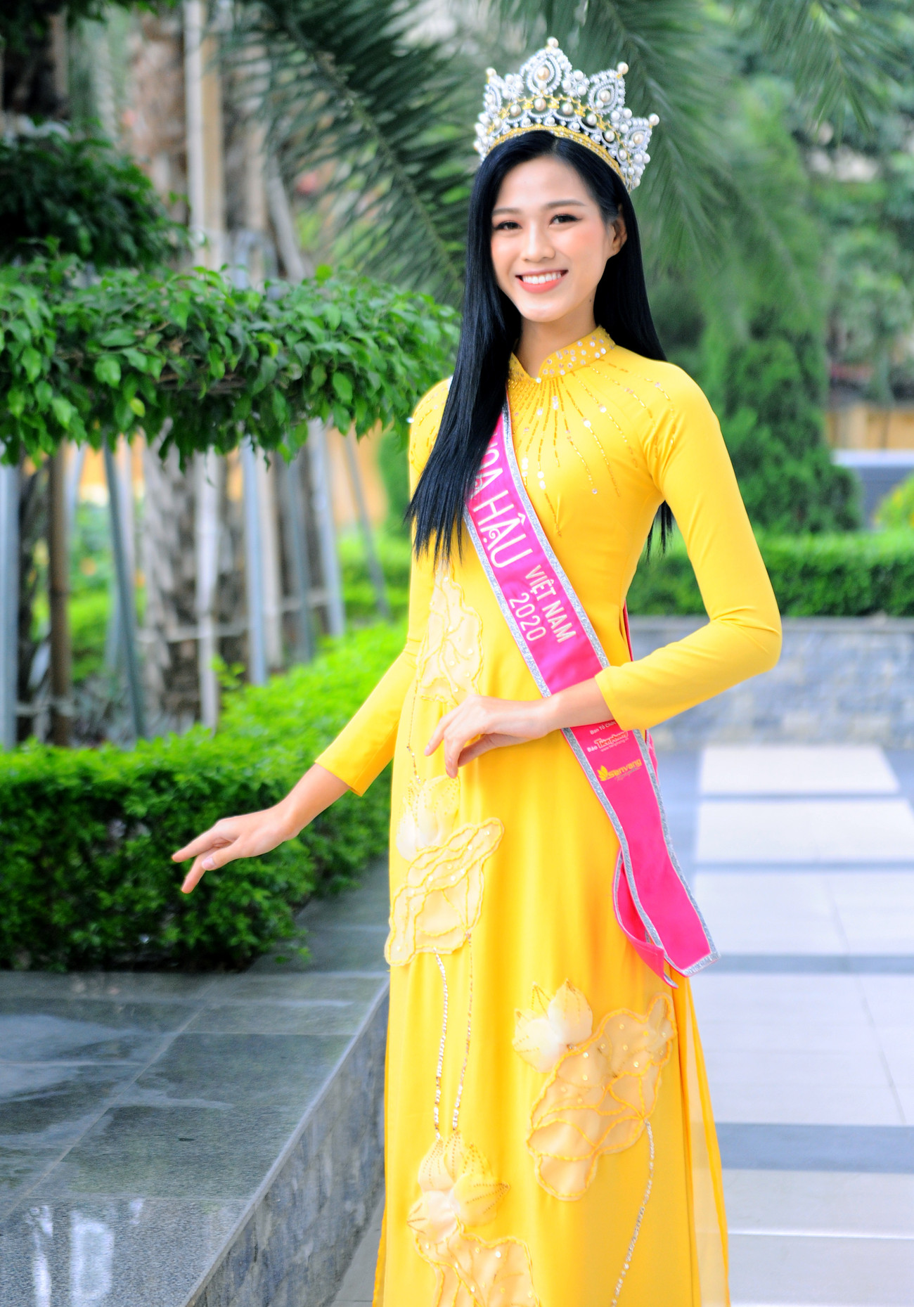 Trong ngày trở lại trường, sinh viên Đỗ Thị Hà - Hoa hậu Việt Nam năm 2020 duyên dáng và nổi bật với tà áo dài có họa tiết hoa sen.