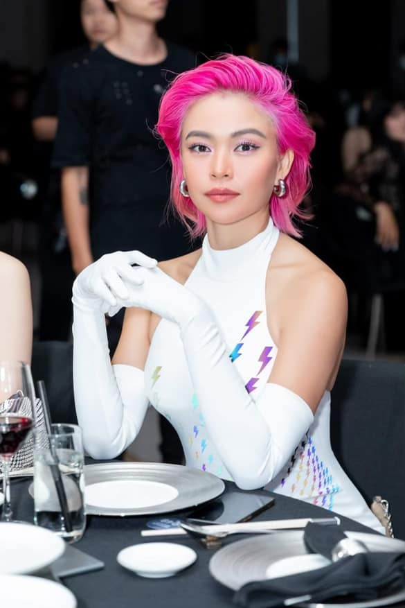 Á hậu Mâu Thuỷ gây chú ý tại sự kiện với mái tóc hồng rực nổi bật.