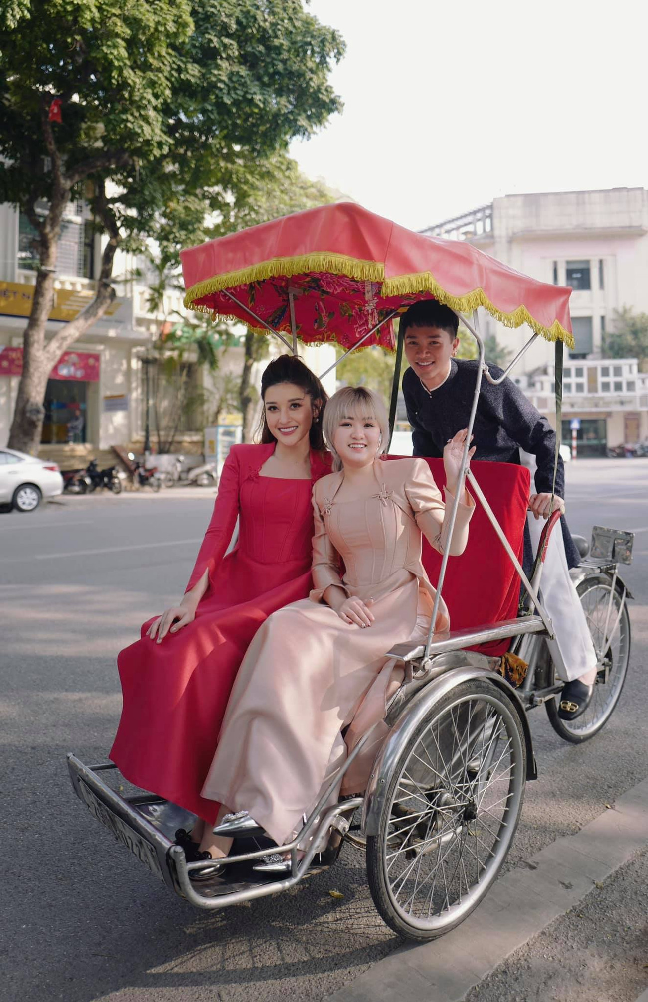 Á hậu Huyền My diện áo dài cùng bạn bè dạo phố cuối năm.