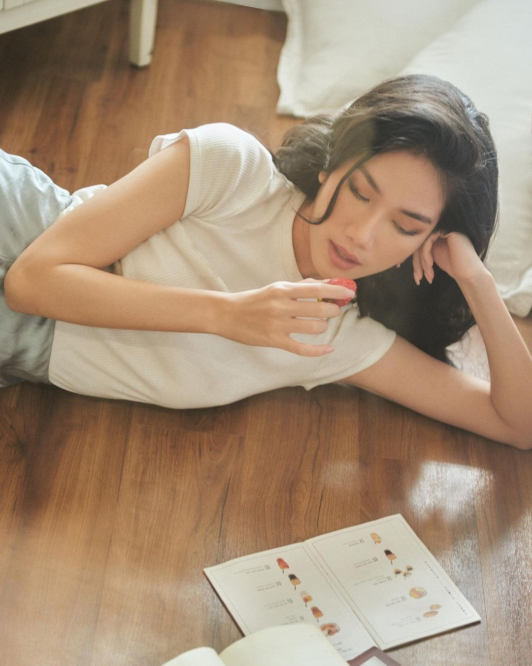 Hoa hậu Lương Thuỳ Linh giản dị nhưng vẫn toát lên thần thái xinh đẹp rạng ngời.