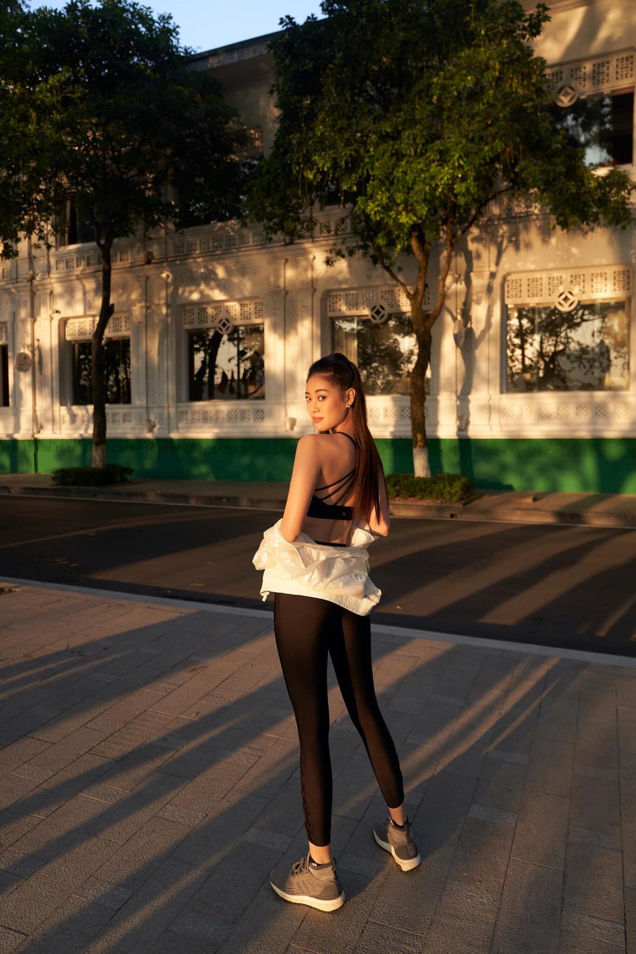 Hoa hậu Khánh Vân năng động, quyến rũ với trang phục thể thao khi chạy bộ sáng sớm.
