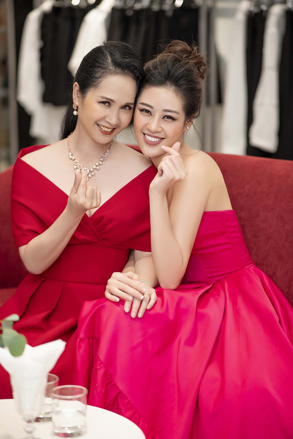Không hẹn mà gặp, cả Khánh Vân và 'mẹ chồng' Lan Hương đều diện trang phục màu đỏ rực rỡ.