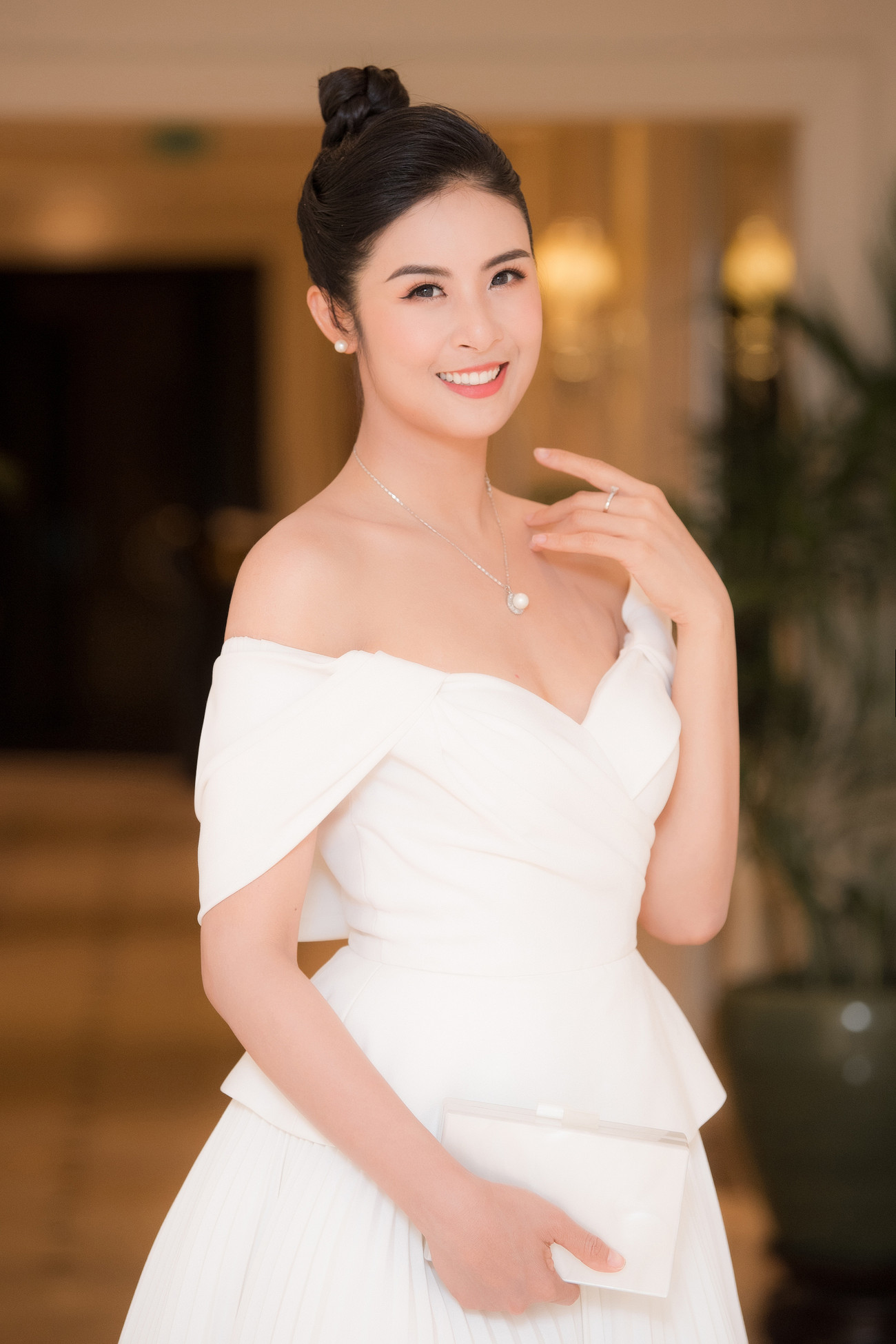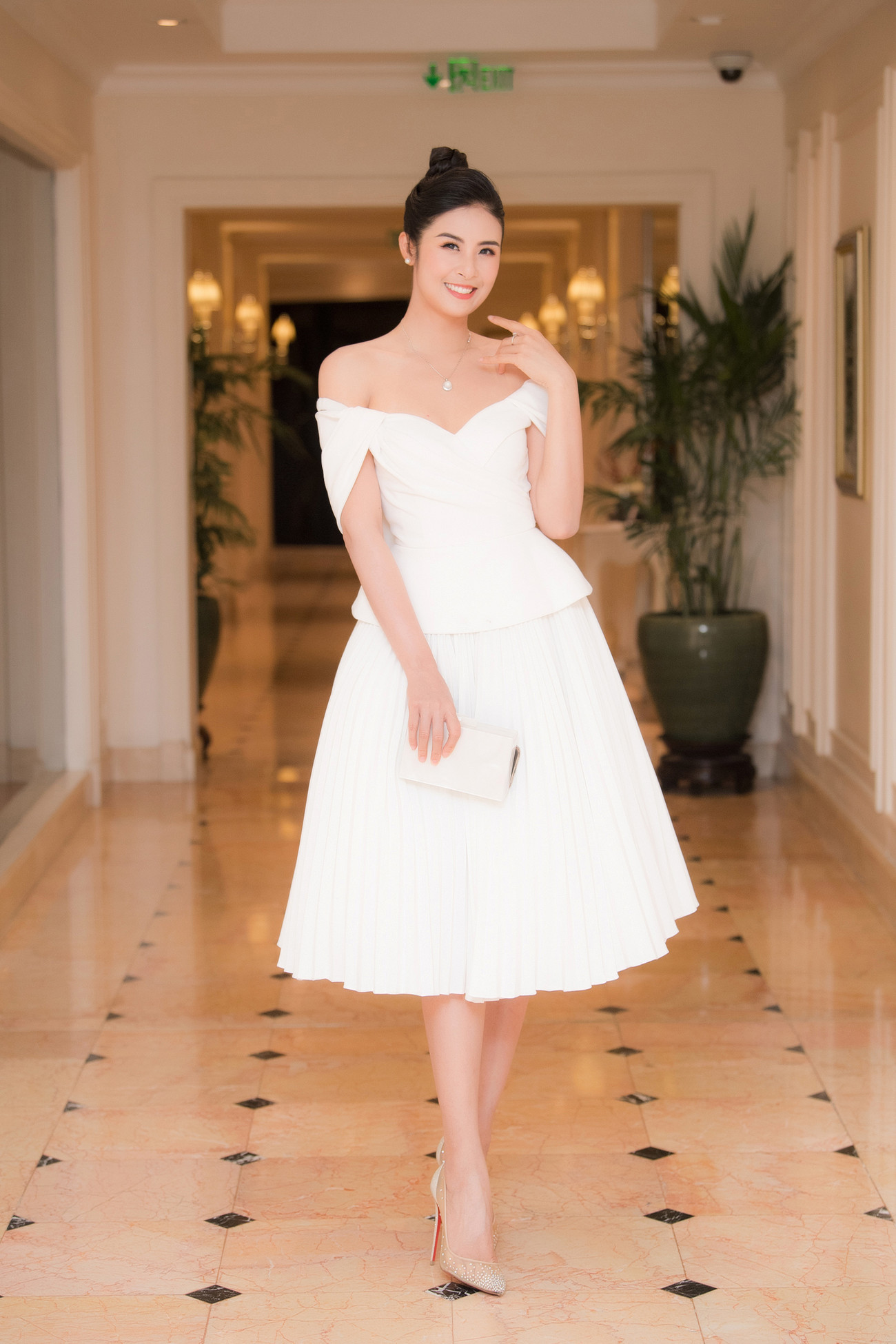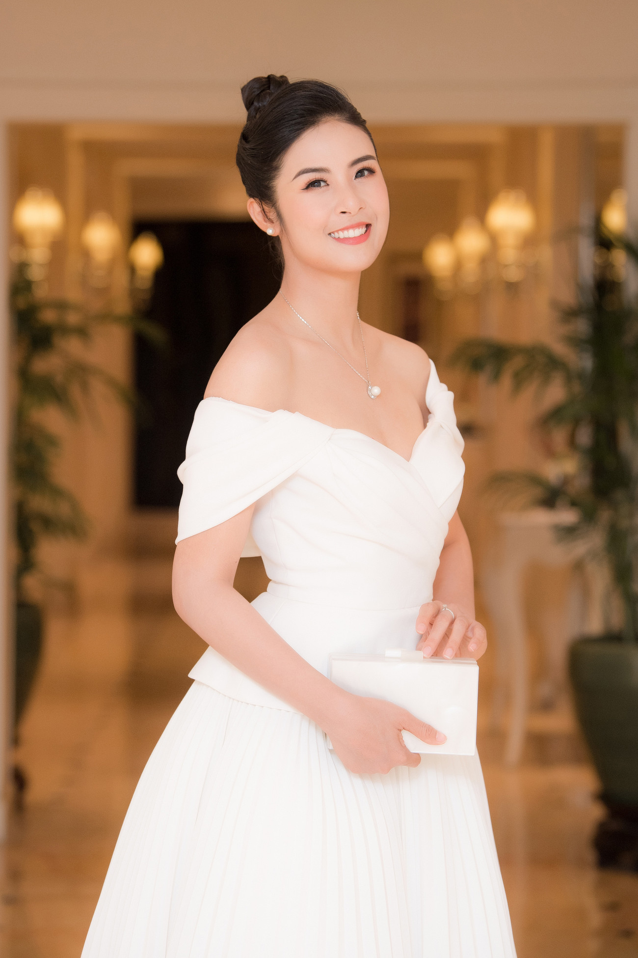 Người đẹp diện bộ váy trắng tinh khiết với thiết kế trễ vai cực kỳ gợi cảm và quyến rũ.