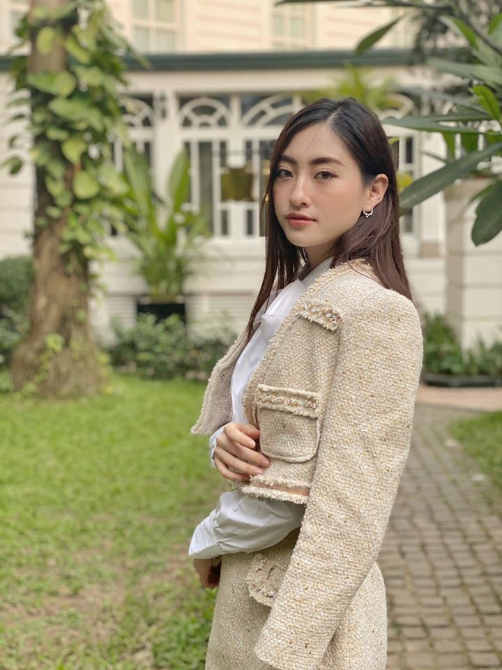 Hoa hậu Lương Thuỳ Linh giản dị nhưng vẫn xinh đẹp với set đồ thanh lịch.