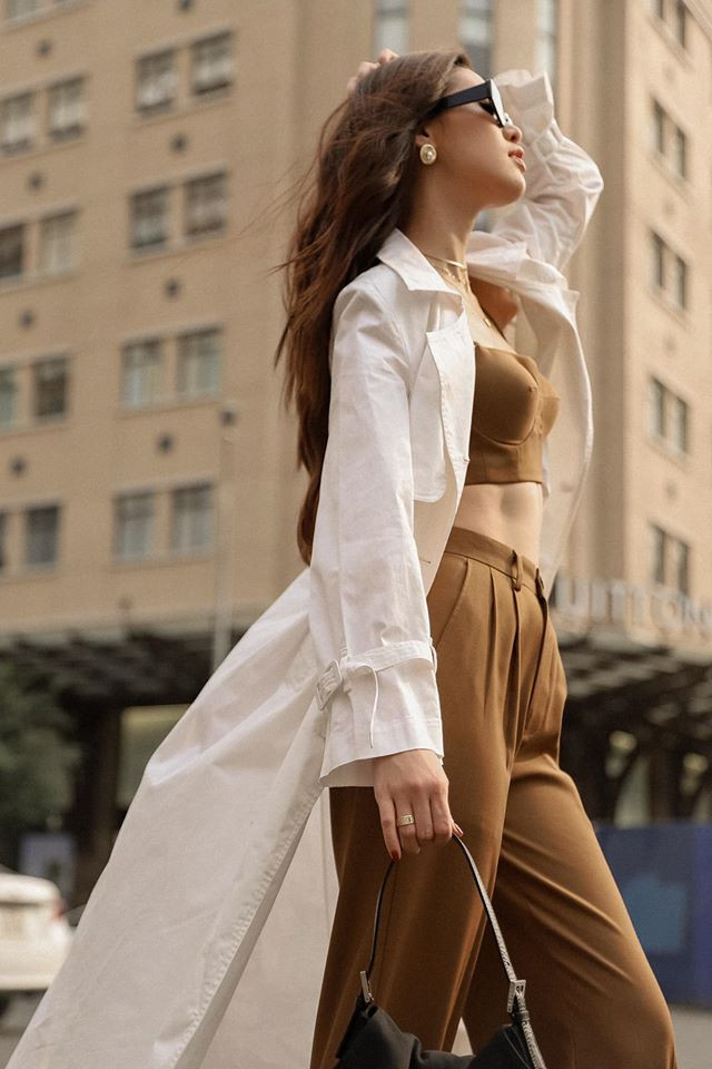 Hoa hậu Khánh Vân khoe dáng với set đồ cá tính trên đường phố Sài Gòn.