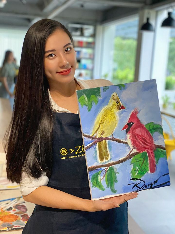 Á hậu Kim Duyên khoe bức tranh do chính tay cô vẽ.
