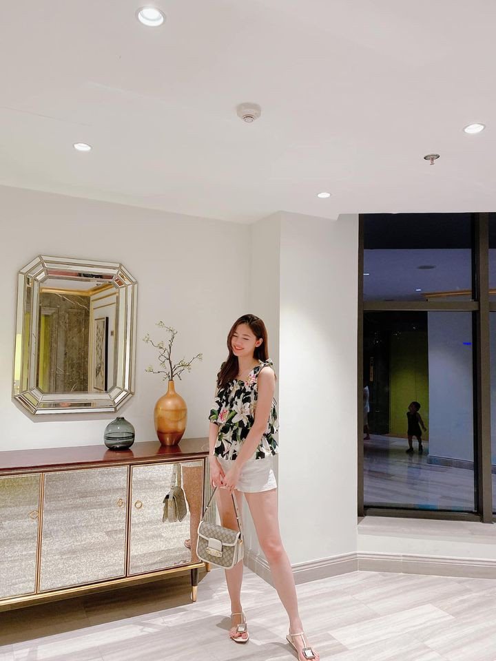 Á hậu Mâu Thuỷ khoe dáng gợi cảm trong bộ trang phục năng động ngày cuối tuần.