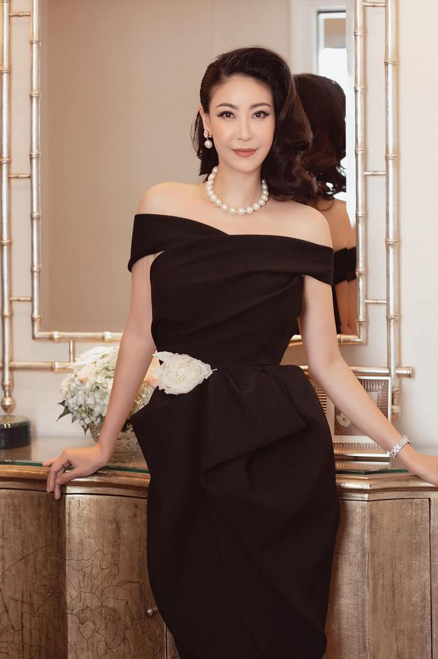 Hoa hậu Hà Kiều Anh sang trọng, trẻ trung trong bộ đầm màu đen lệch vai quyển rũ.