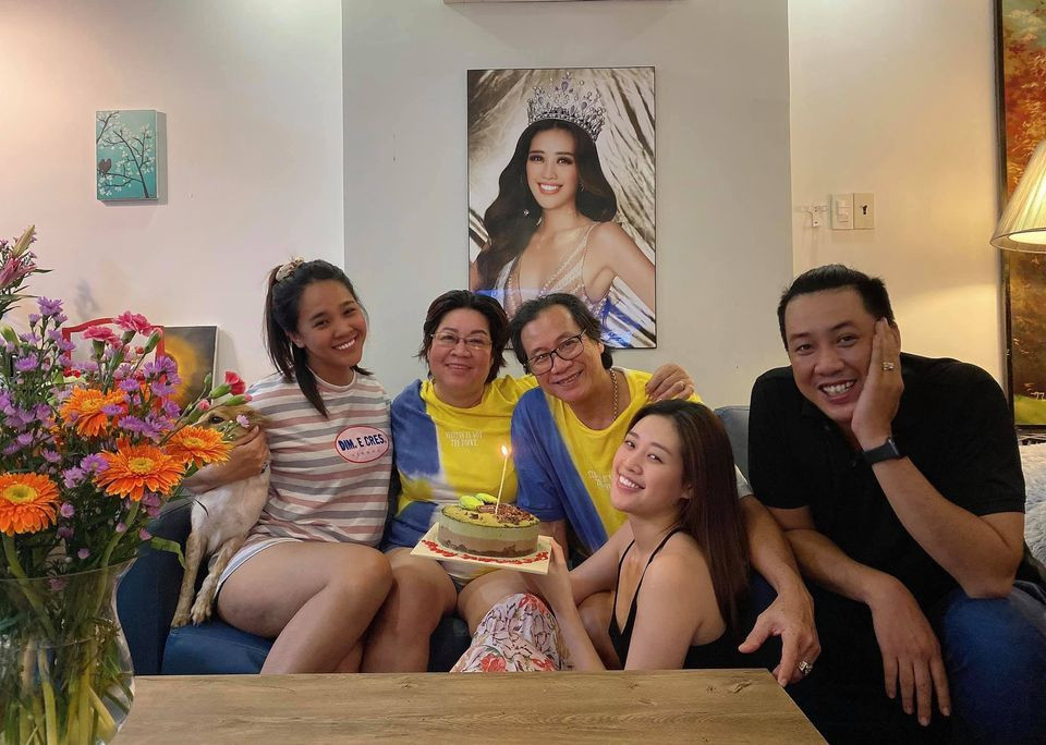 Hoa hậu Khánh Vân cùng gia đình quây quần trong buổi tiệc sinh nhật bố.