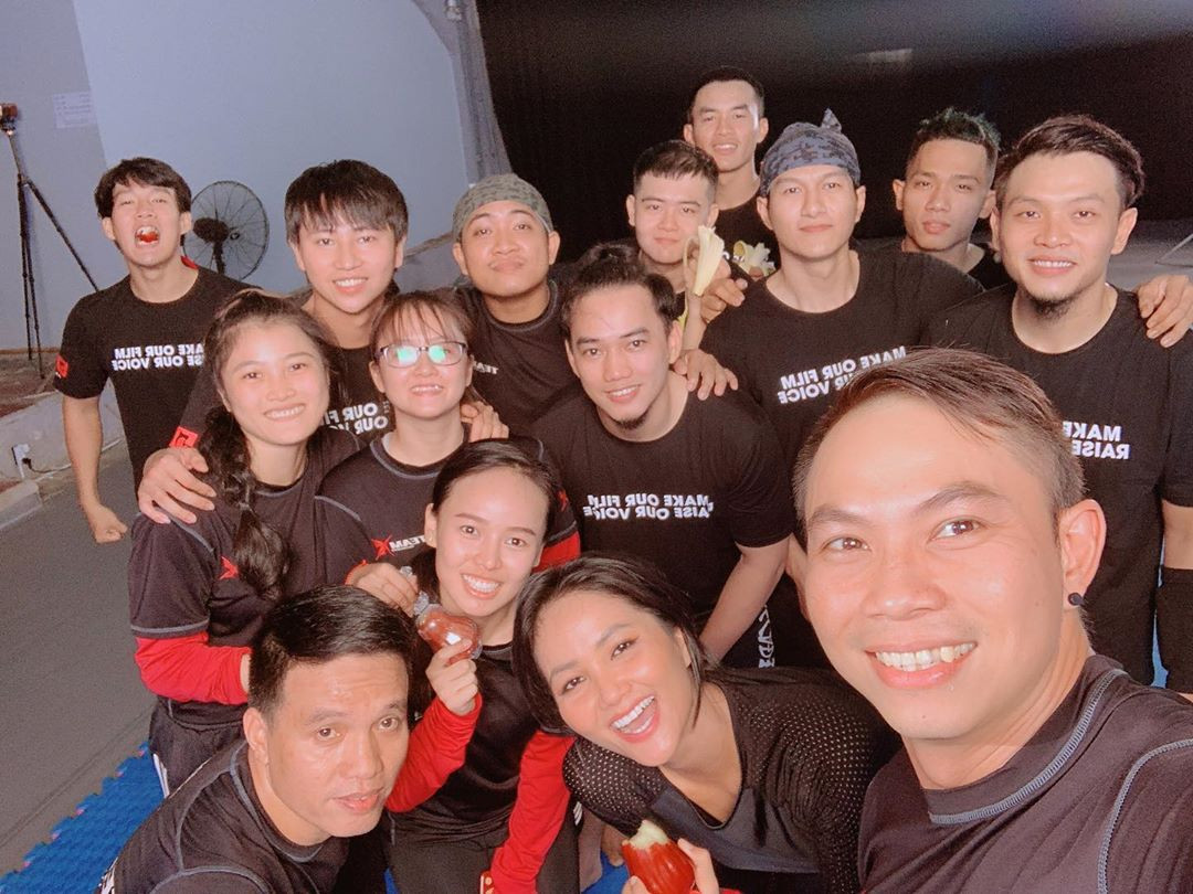Người đẹp miệt mài tập luyện trên phim trường cùng dàn võ sư. Mới đây, sau một thời gian ngắn luyện tập, H'Hen Niê gây ngỡ ngàng với đoạn videp clip cô tả xung hữu đột hạ gục một lúc 7 đối thủ.