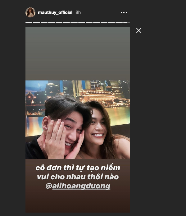 Á hậu Mâu Thuỷ thân thiết bên nam ca sĩ Ali Hoàng Dương.