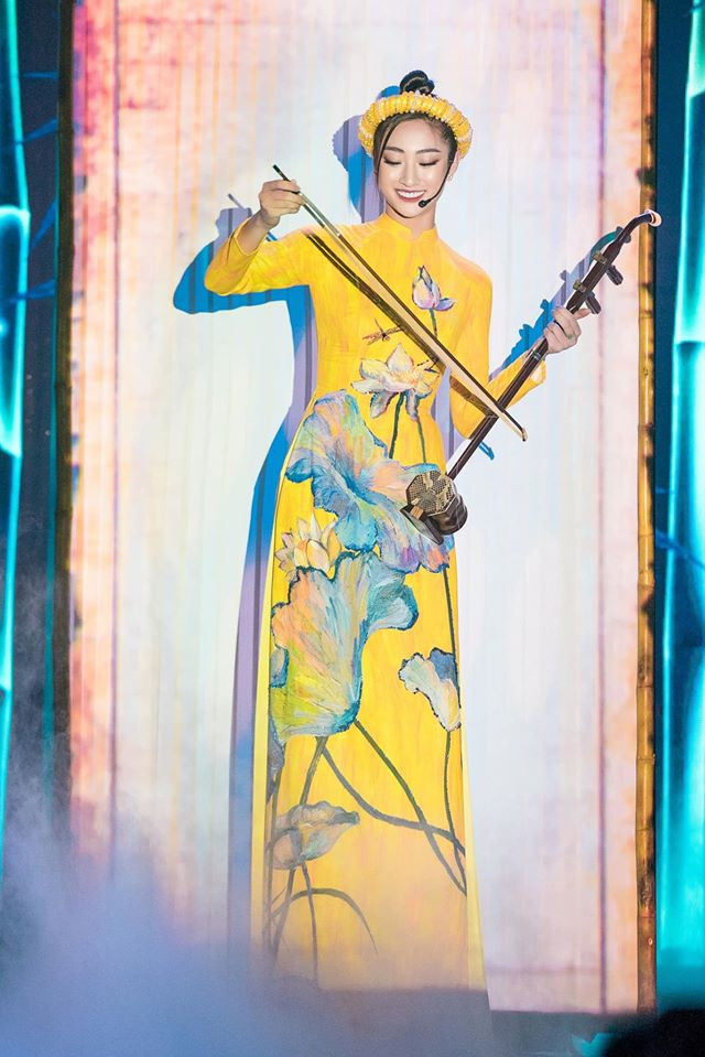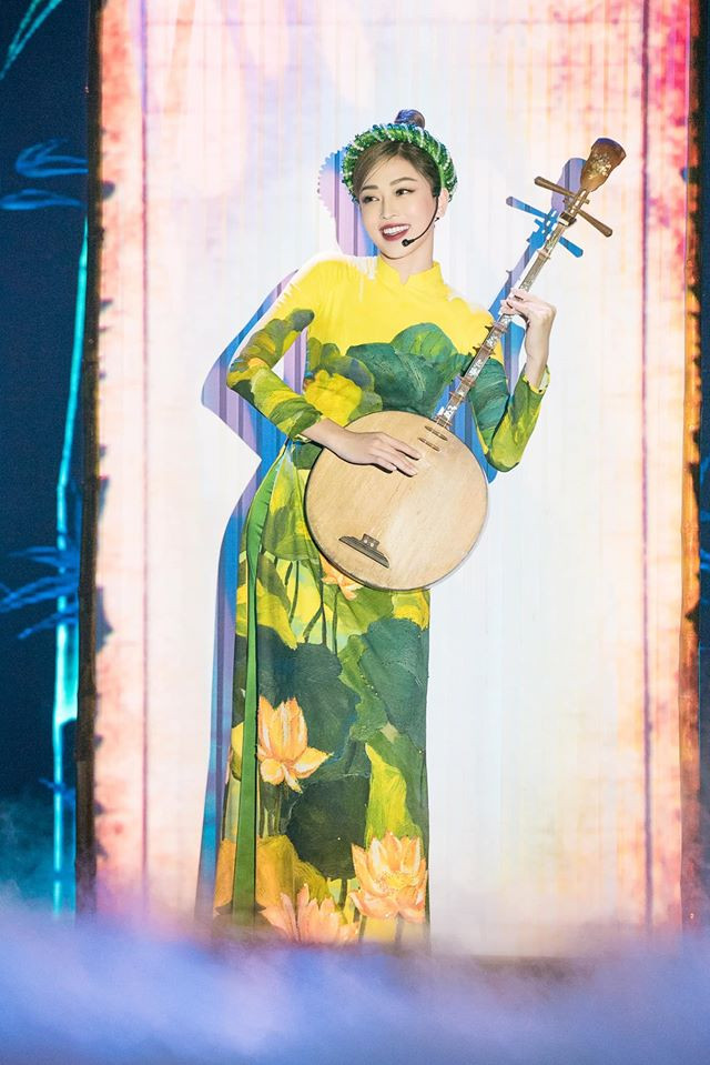Trong khi đó, Á hậu Phương Nga hoá thân thành mỹ nhân chơi đàn Nguyệt.