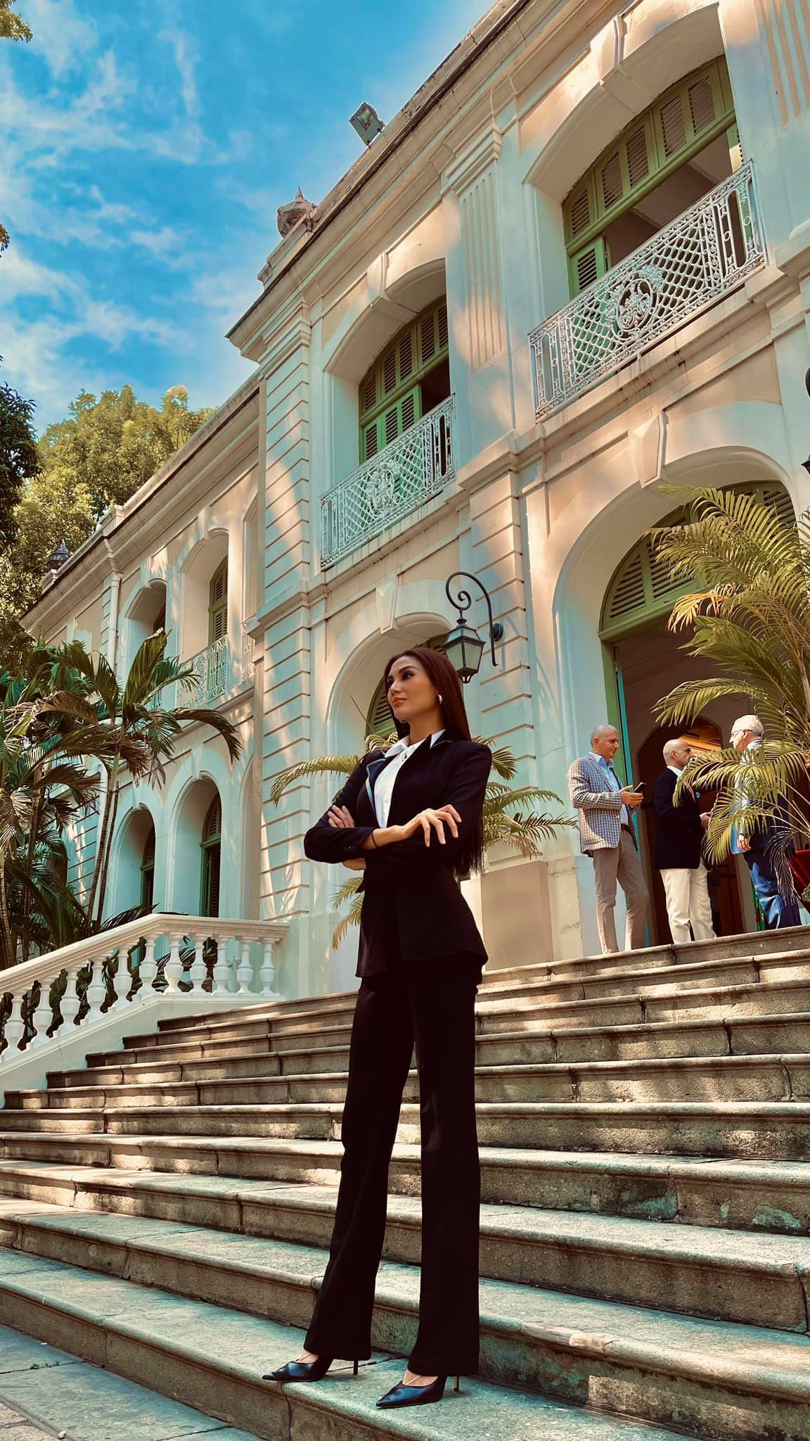 Siêu mẫu Võ Hoàng Yến thanh lịch với bộ suit màu đen.