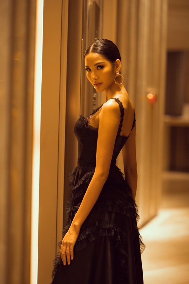 Bản tin Hoa hậu 15/3: Mới đây Hoàng Thuỳ xuất hiện với tạo hình vô cùng xinh đẹp và kiều diễm khi diện bộ váy đen với những đường viền bằng ren đen chạy dọc thân váy.