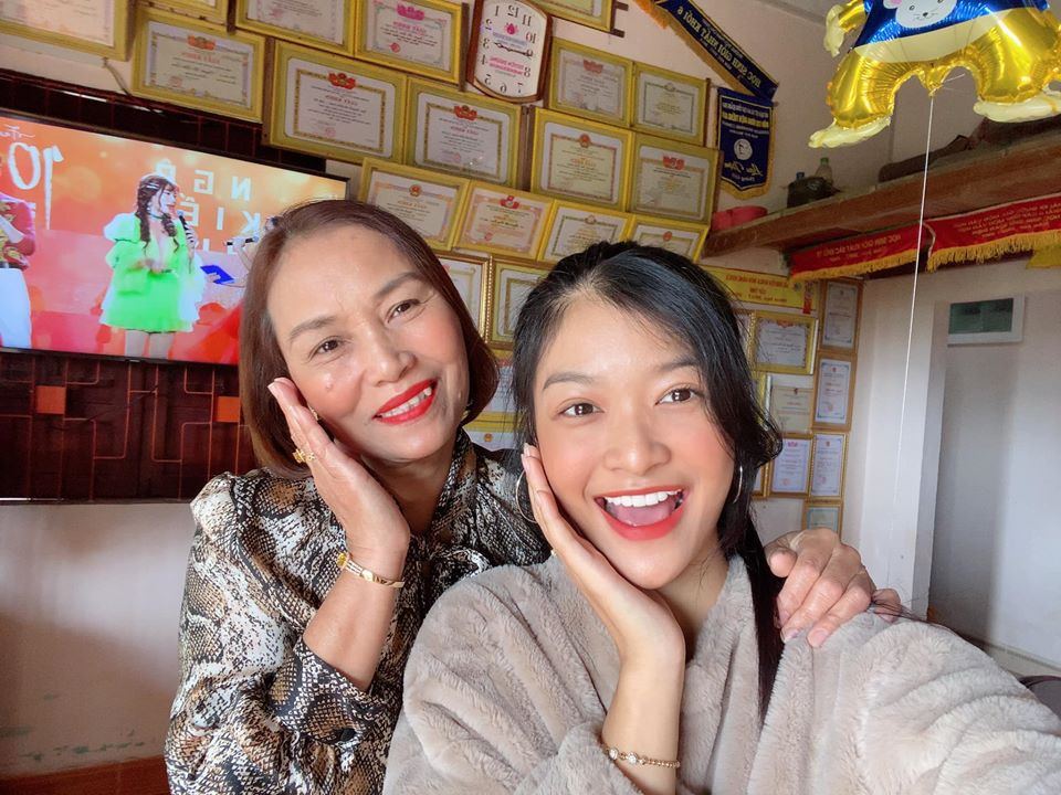 Á hậu Kiều Loan chụp ảnh nhí nhảnh bên mẹ trong ngày sinh nhật của mẹ.