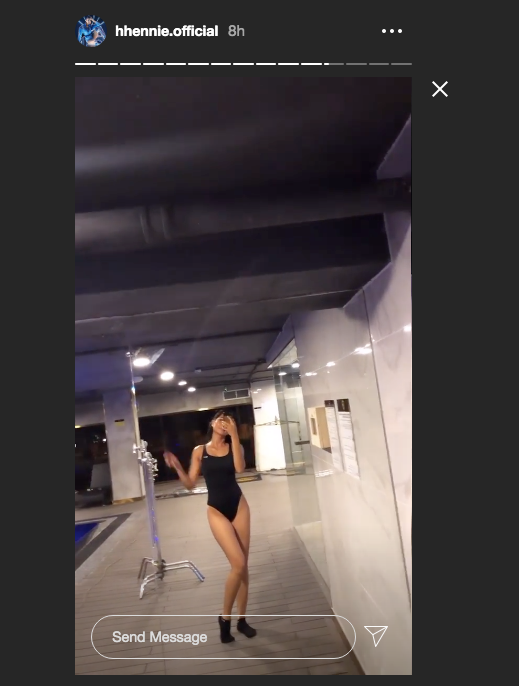 Trong khi đó trên trang cá nhân, Hoa hậu H'Hen Niê hé lộ cảnh hậu trường cô thực hiện TVC quảng cáo với trang phục bikini màu đen một mảnh quyến rũ.