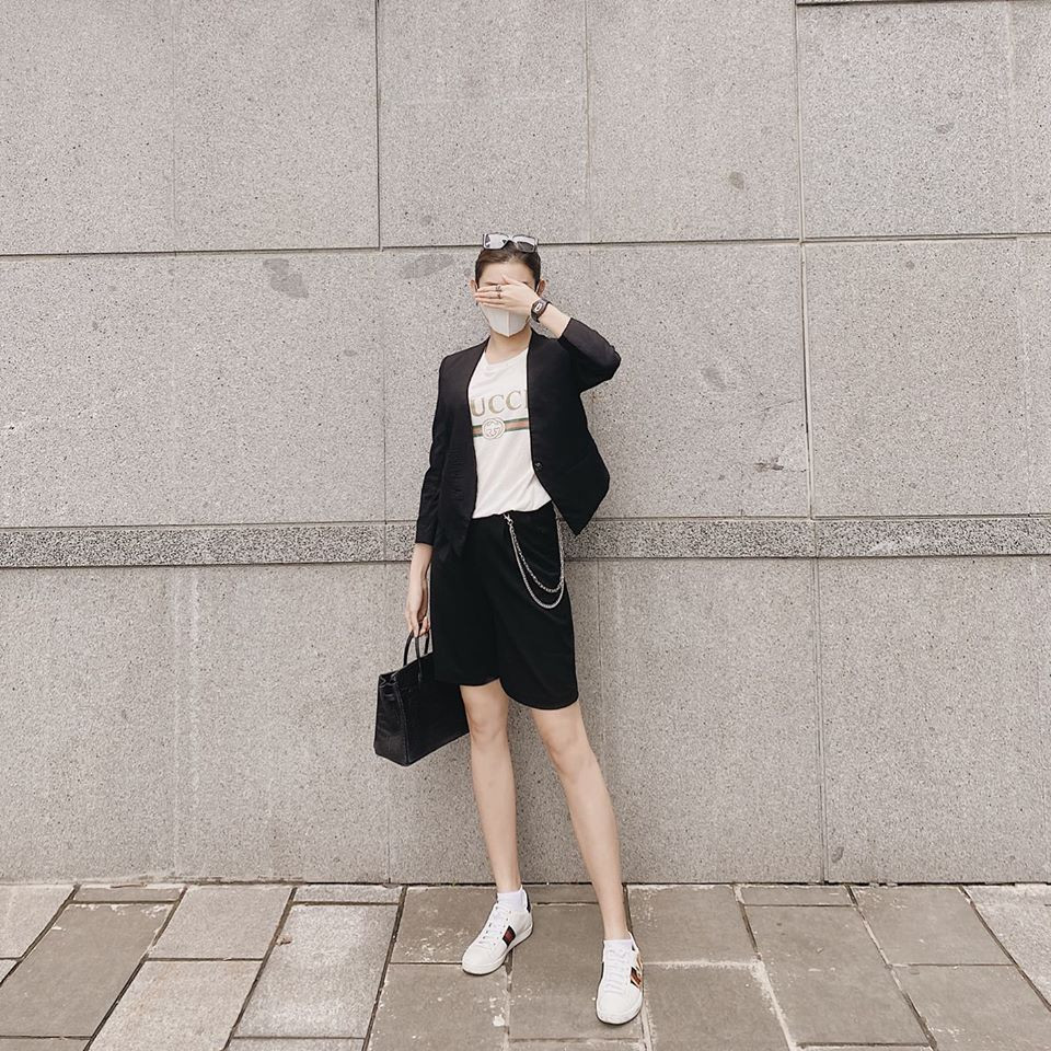 Á hậu Huyền My diện cả 'cây đen' sành điệu khi xuống phố.