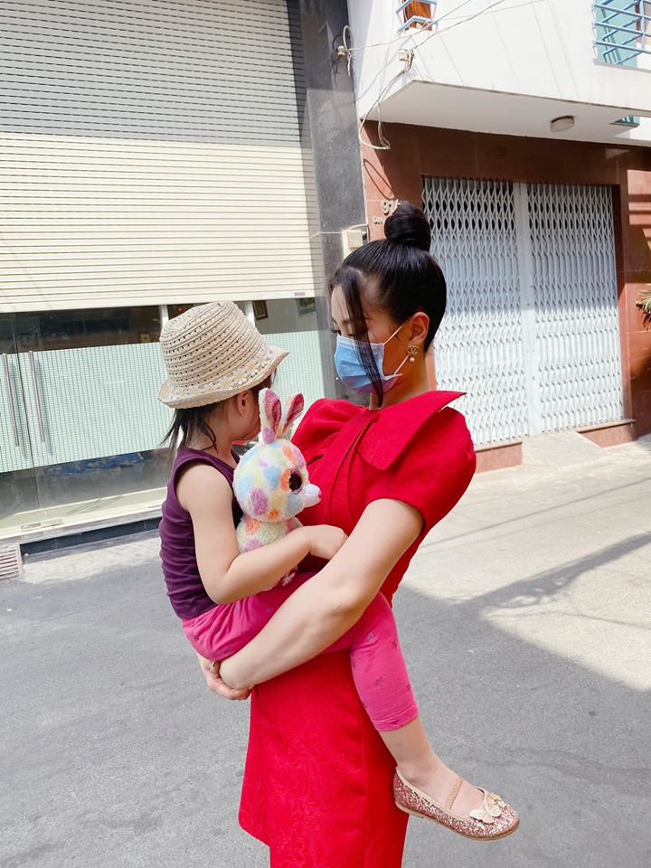 Vì con gái được nghỉ học do dịch cúm corona nên Diễm Trang đưa bé đến trường quay cùng mẹ.