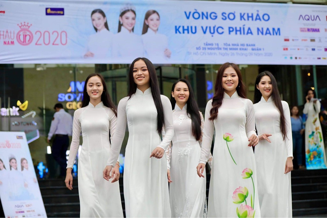 Không hẹn mà gặp, rất nhiều thí sinh chọn trang phục áo dài trắng nền nã, duyên dáng khi tới tham dự buổi sơ khảo.