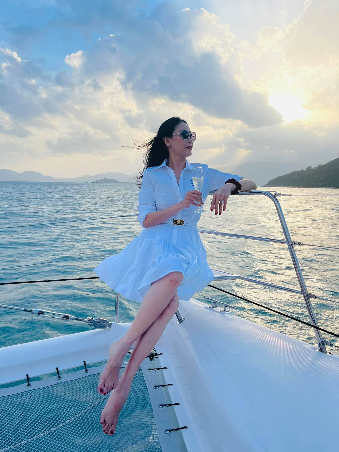 Hoa hậu Hà Kiều Anh khoe dáng trẻ trung trên du thuyền trong chuyến nghỉ dưỡng đầu năm ở Nha Trang.